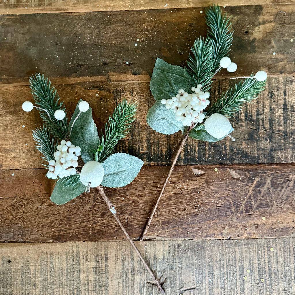 Pick - Frosted Leaf White Berry Pick