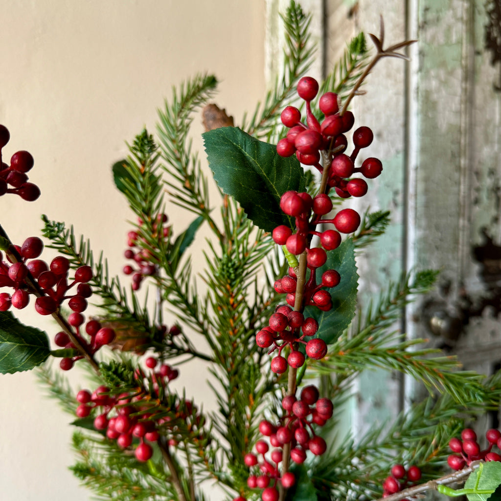Stem - Red Mini Berry Clusters & Leaves, 63cm