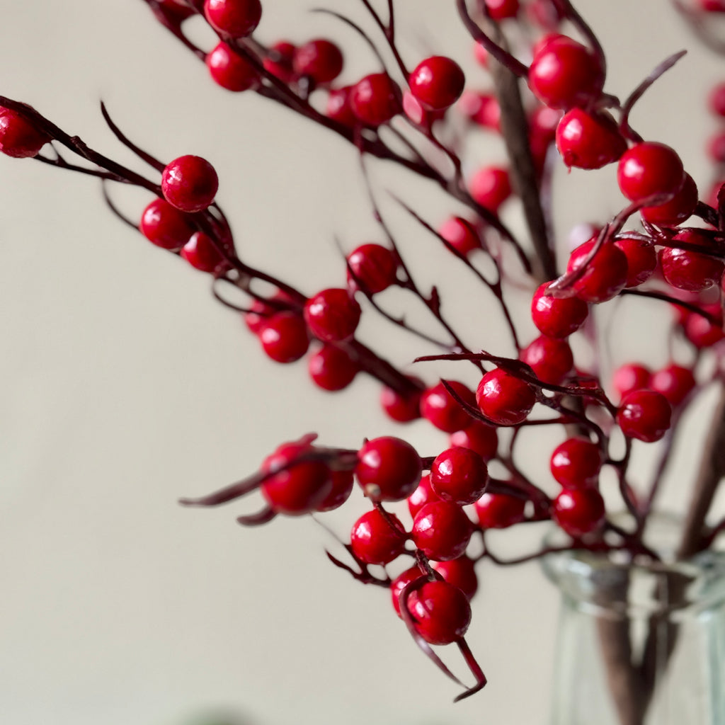 Stem - Shiny Red Berries, Brown Stem, 64cm