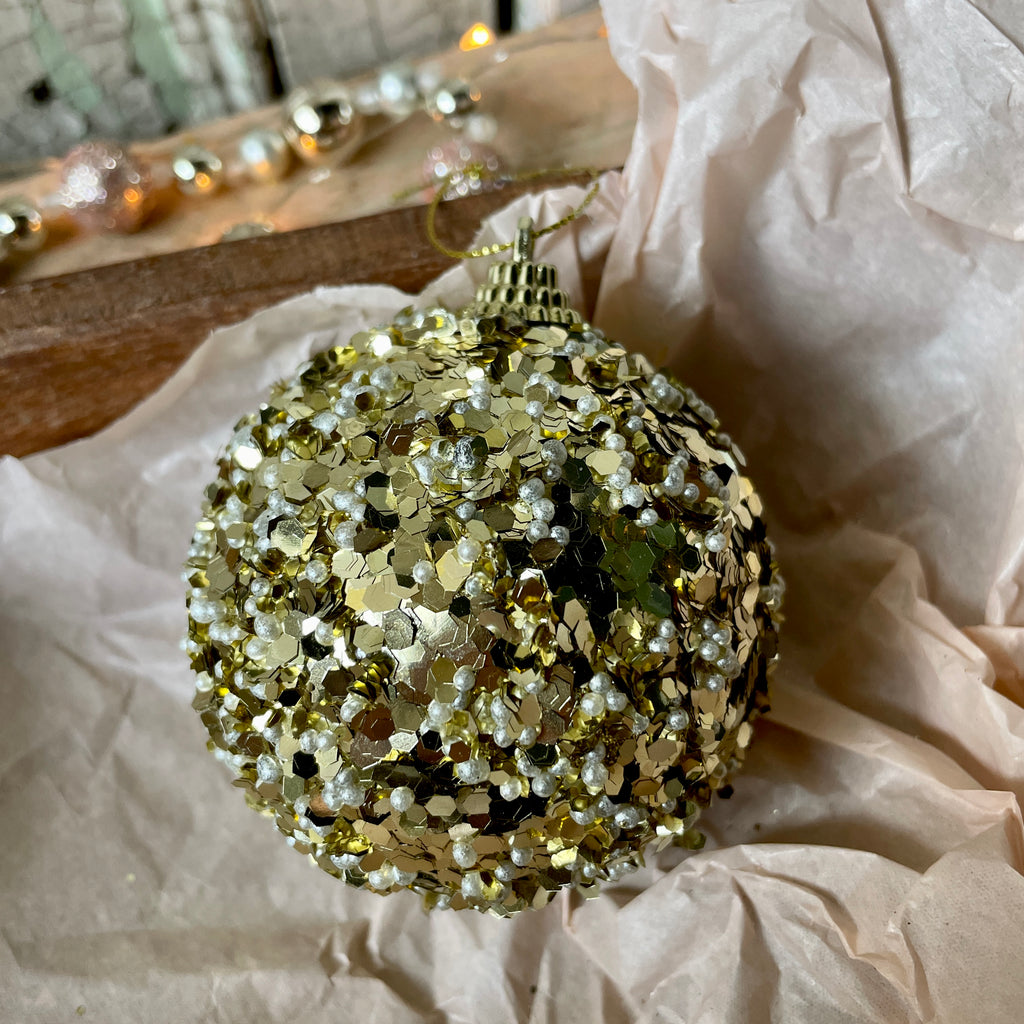 Shatterproof Bauble - Gold Encrusted Beads 8cm