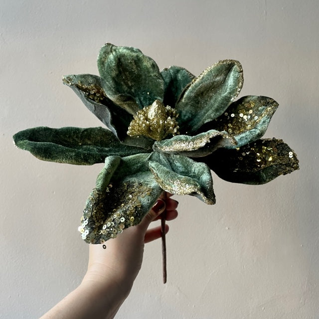 Pick - Dusky Green and Gold Sequin Magnolia, 34cm