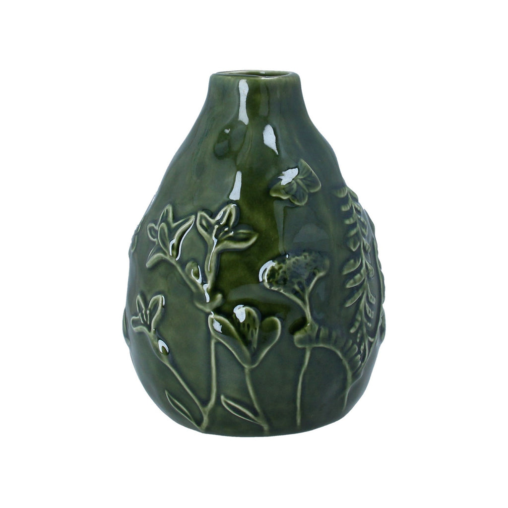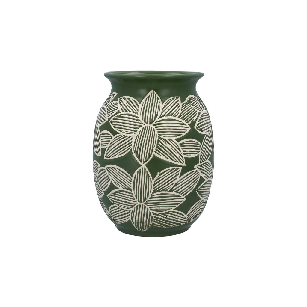Vase - Green Ceramic Flora Round