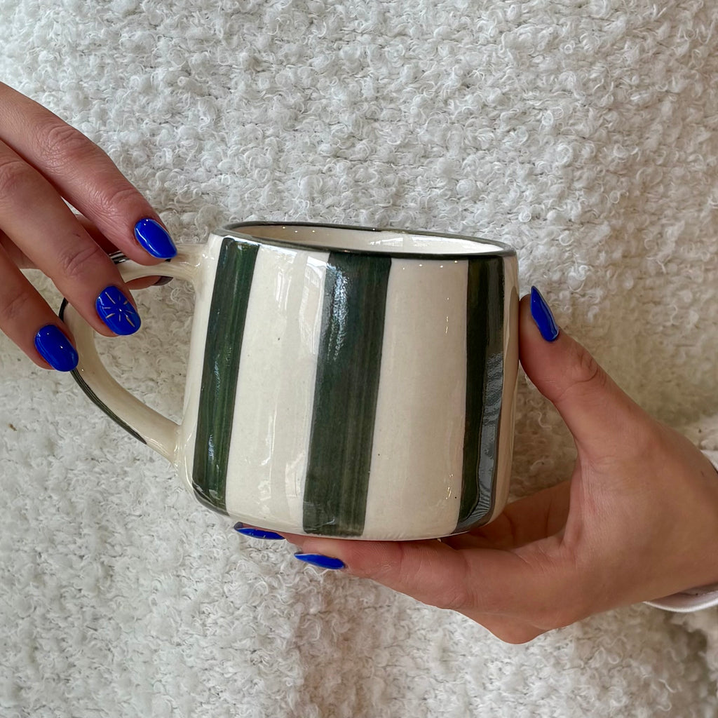 Handmade Reversible Shopper - Lrg., Green on White, Lavender Flowers