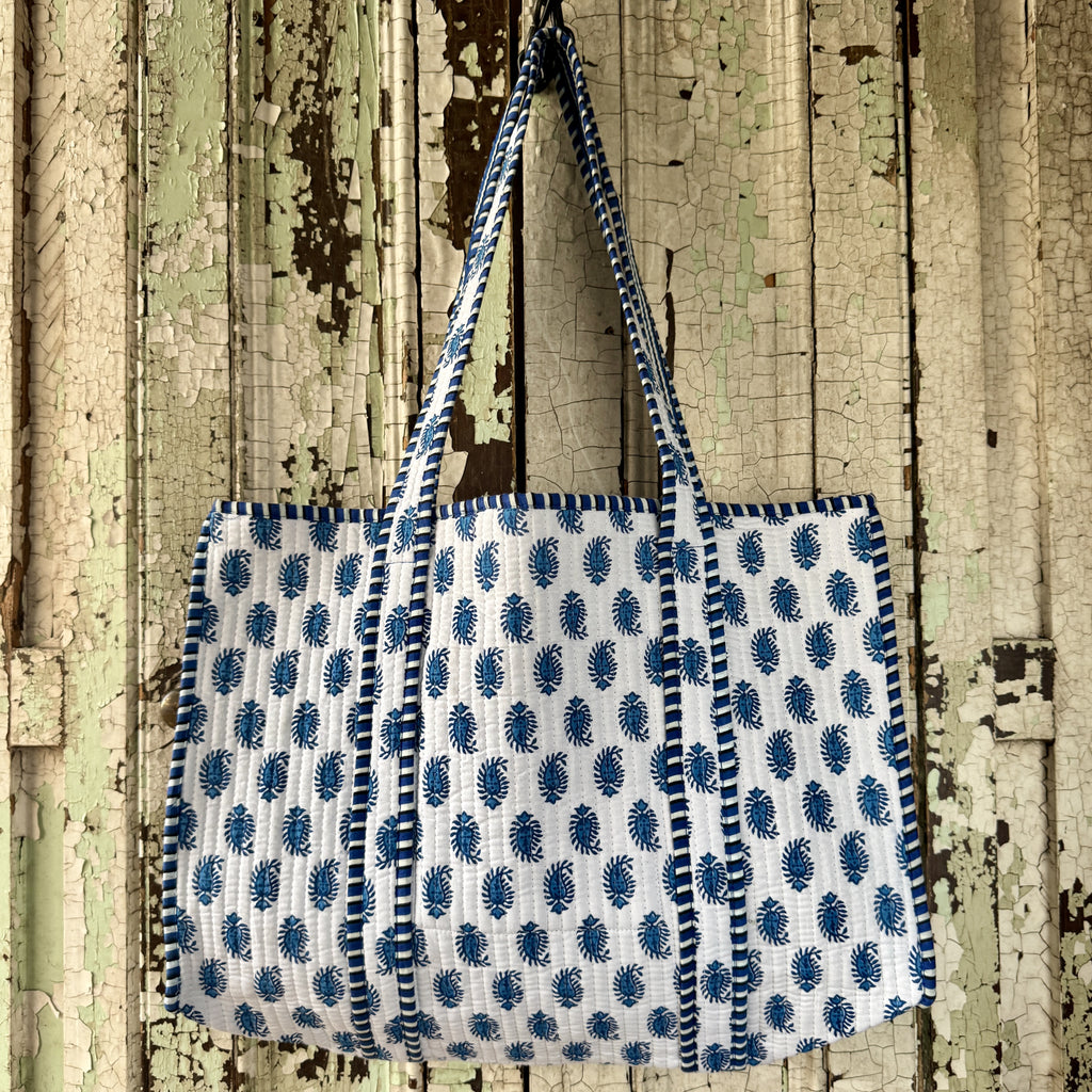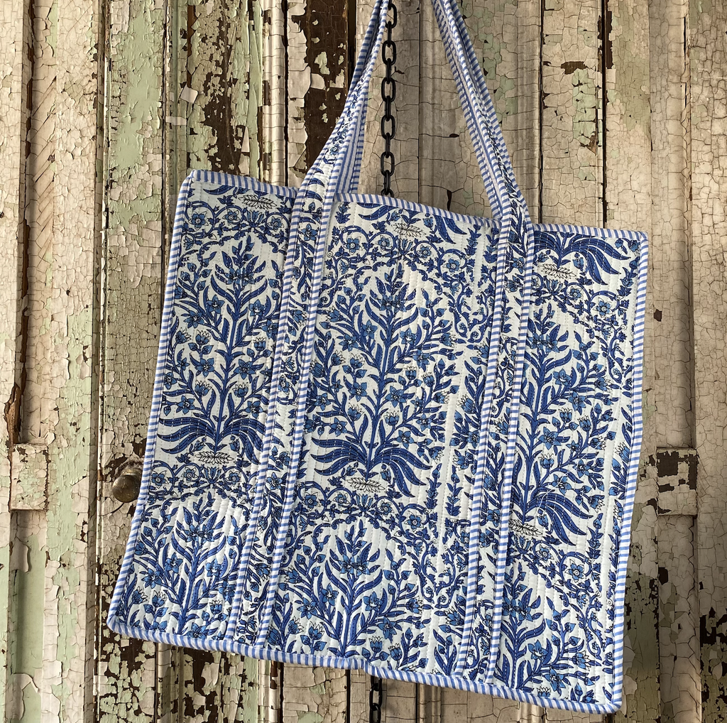 Handmade Reversible Shopper - Lrg., Blue & White Lotus