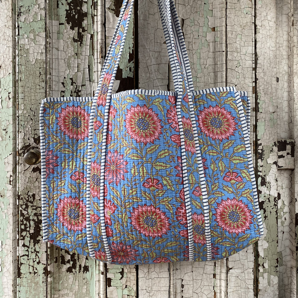 Handmade Reversible Shopper - Small Light Blue w Pink Flower