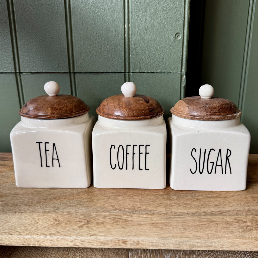 Tea, Coffee & Sugar Set - Ceramic & Acacia Wood Lid