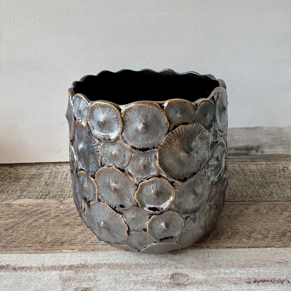 Ceramic Plant Pot - Mushroom Relief Detail, H18cm