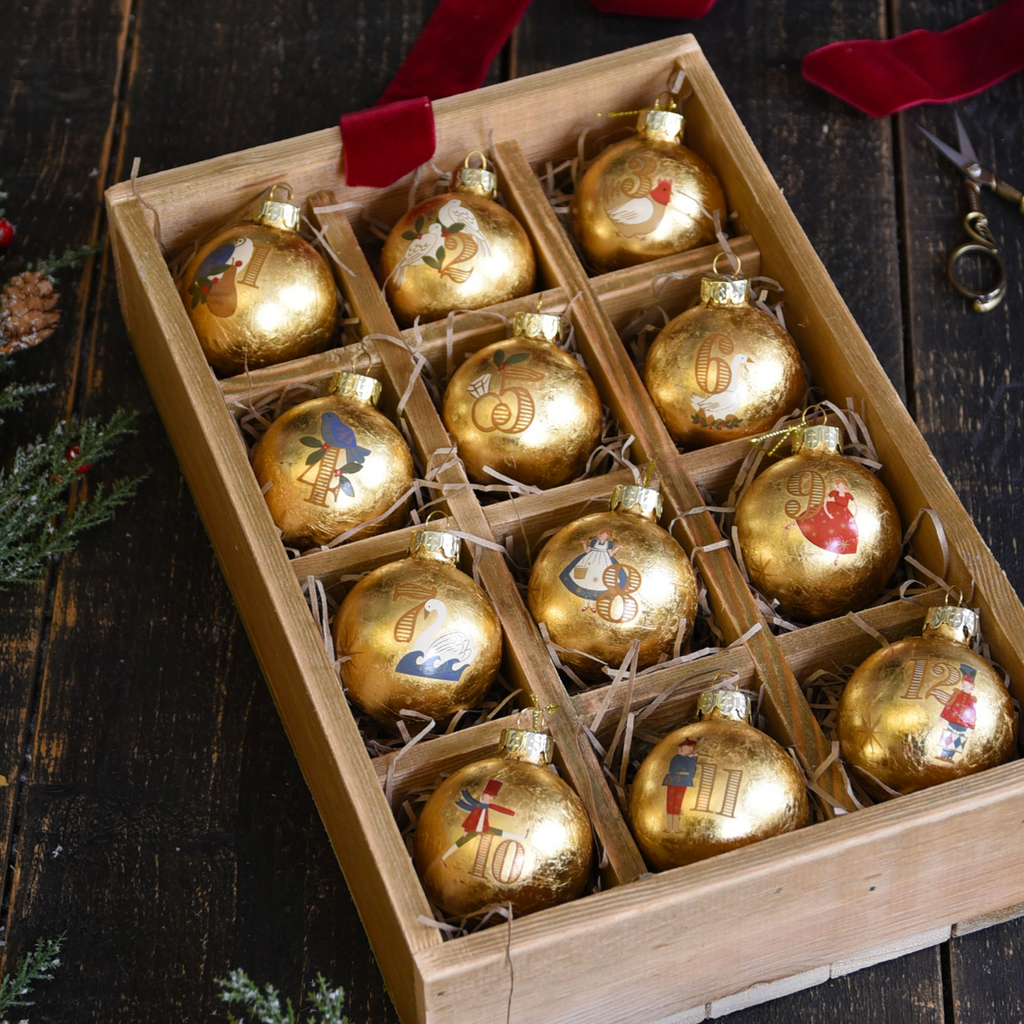 Box 12 Glass Baubles - 12 Days of Christmas