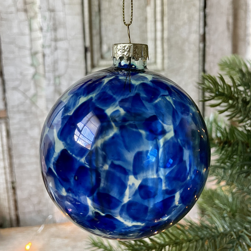 Bauble - Marbled Glass Ball, Blue