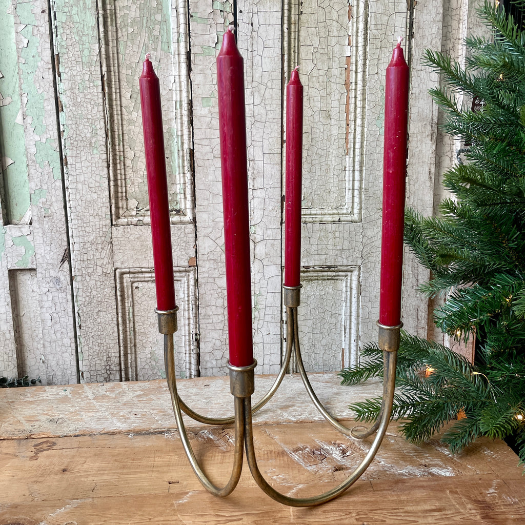 Made from simply shaped brass, finished with a rustic patina to add an aged look This lovely candelabra will make a statement in your dining table this christmas.