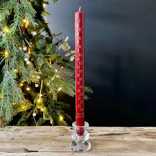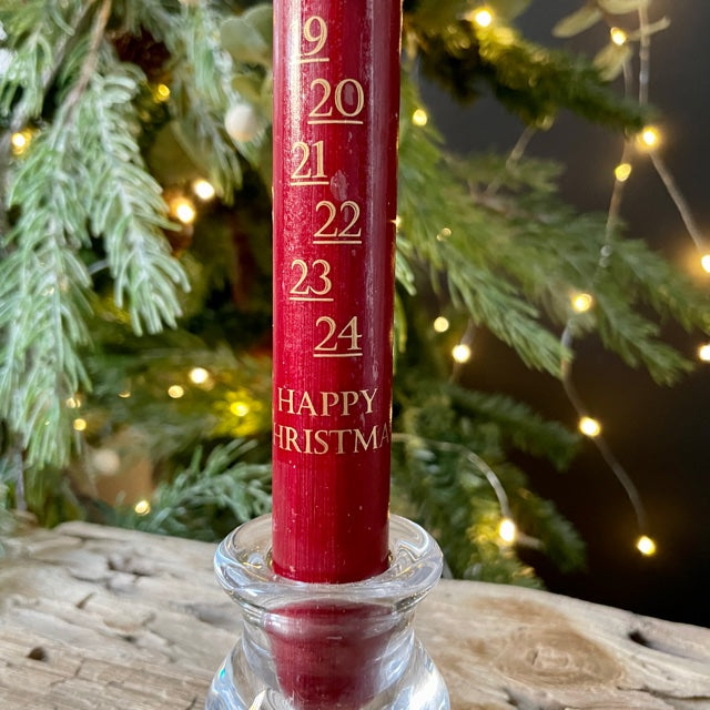 Bring the Festive spirit into your home this time honoured tradition of lighting an advent candle each day as a countdown to Christmas. Advent Dinner Candle - Red is a beautifully simple dinner/taper candle, delicately numbered 1-24 in Gold to mark each day of advent.