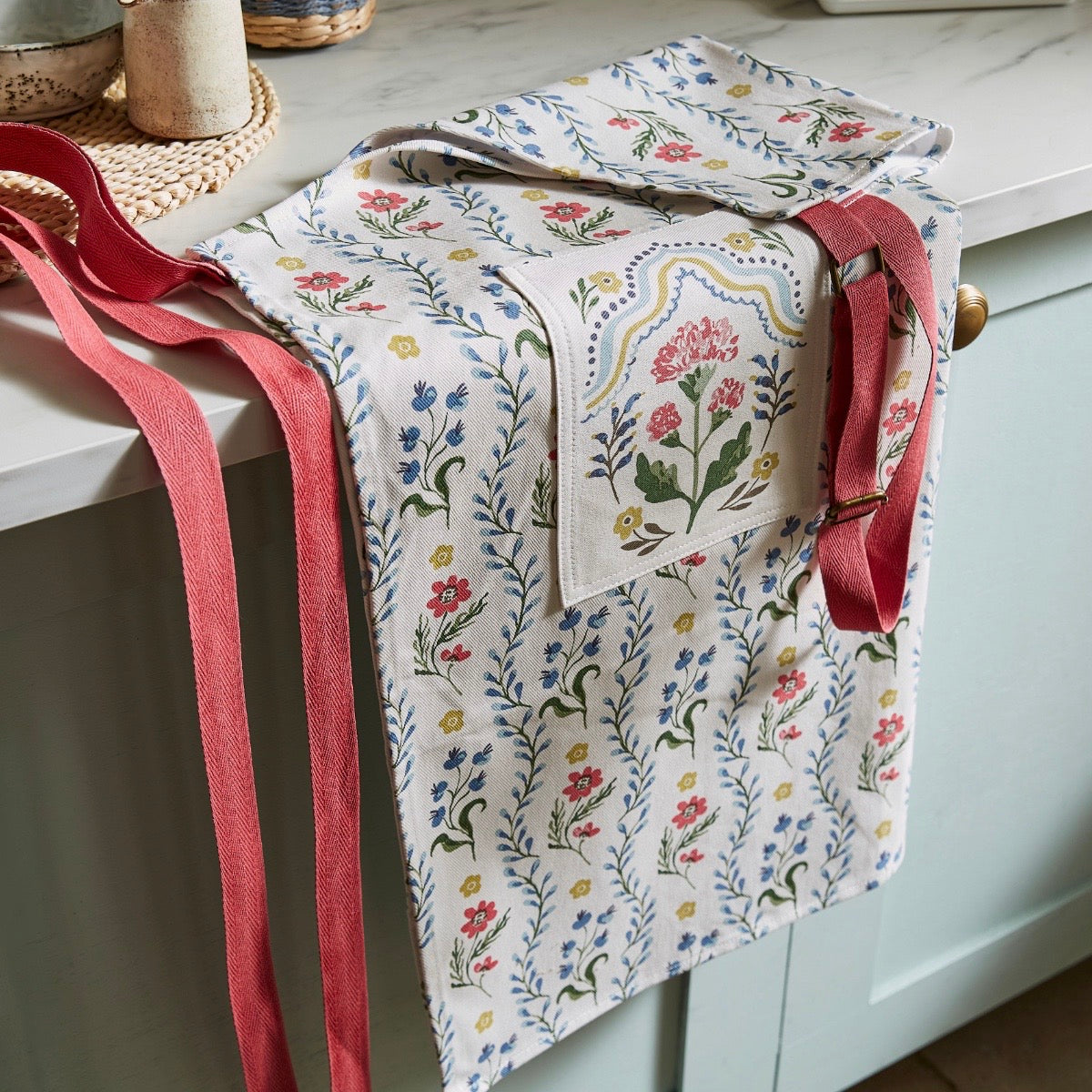 Drawing inspiration from chintz floral ceramic tea sets and traditional Indian block print designs, this beautifully illustrated floral apron is a wonderful addition to your kitchen.