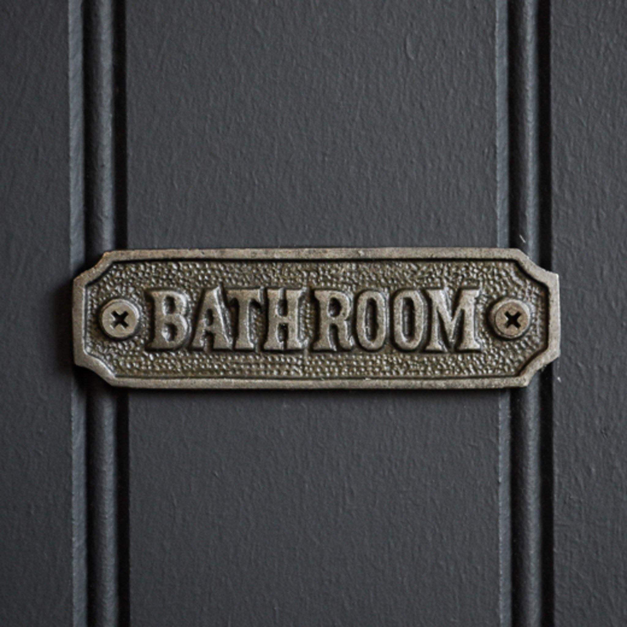 Antique iron bathroom door plaque. Our antique iron bathroom door plaque is industrial, traditional and practical. Antique iron bathroom door plaque measures W11.5cm x H3.5cm xD3mm