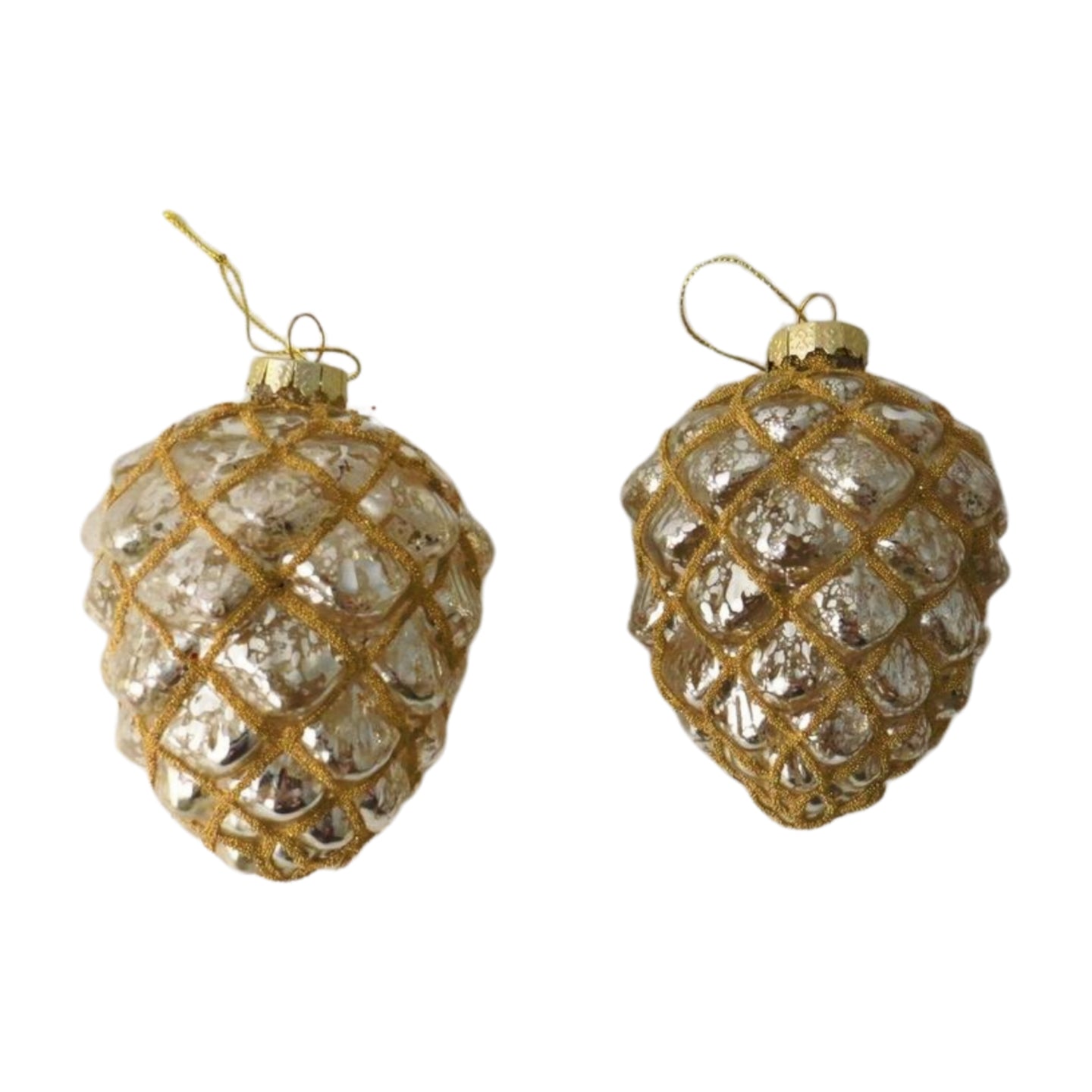 Add a touch of glitz to your christmas tree with our Bauble - Mottled Silver & Gold Glass Cones