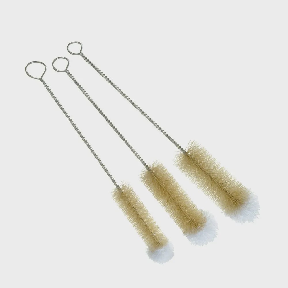Set of three bottle brushes with cotton ball tips. Great for delicate and hard to reach cleaning tasks like inside eco water bottles and vases.