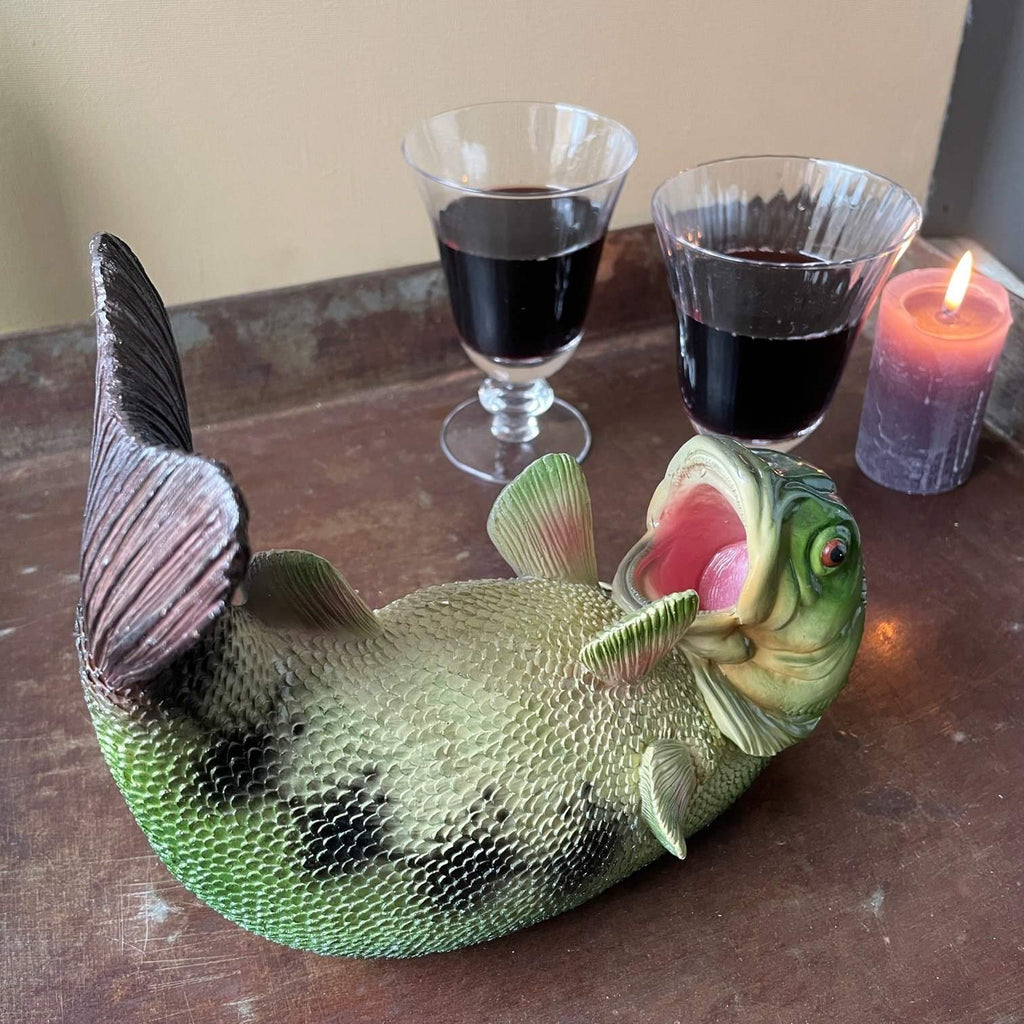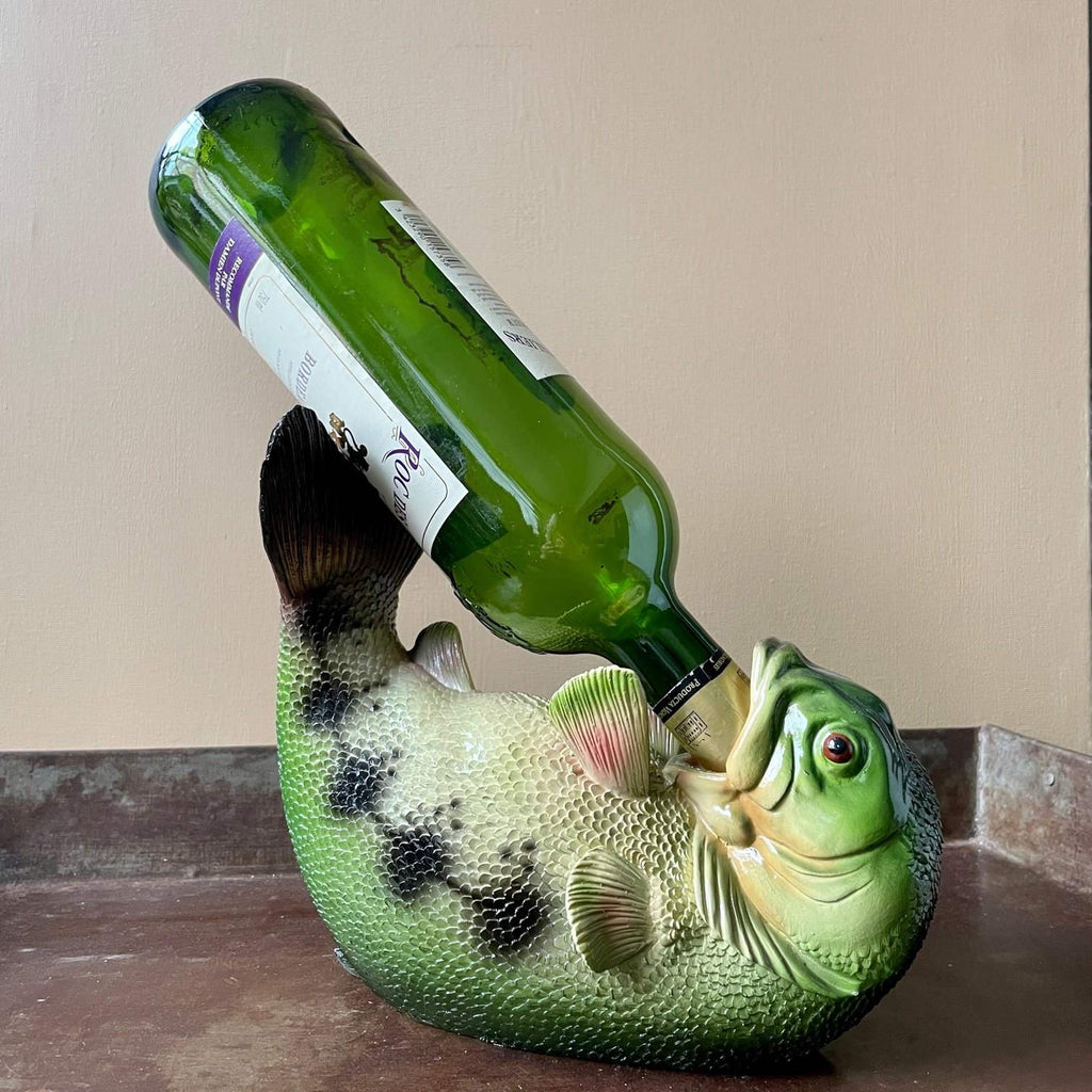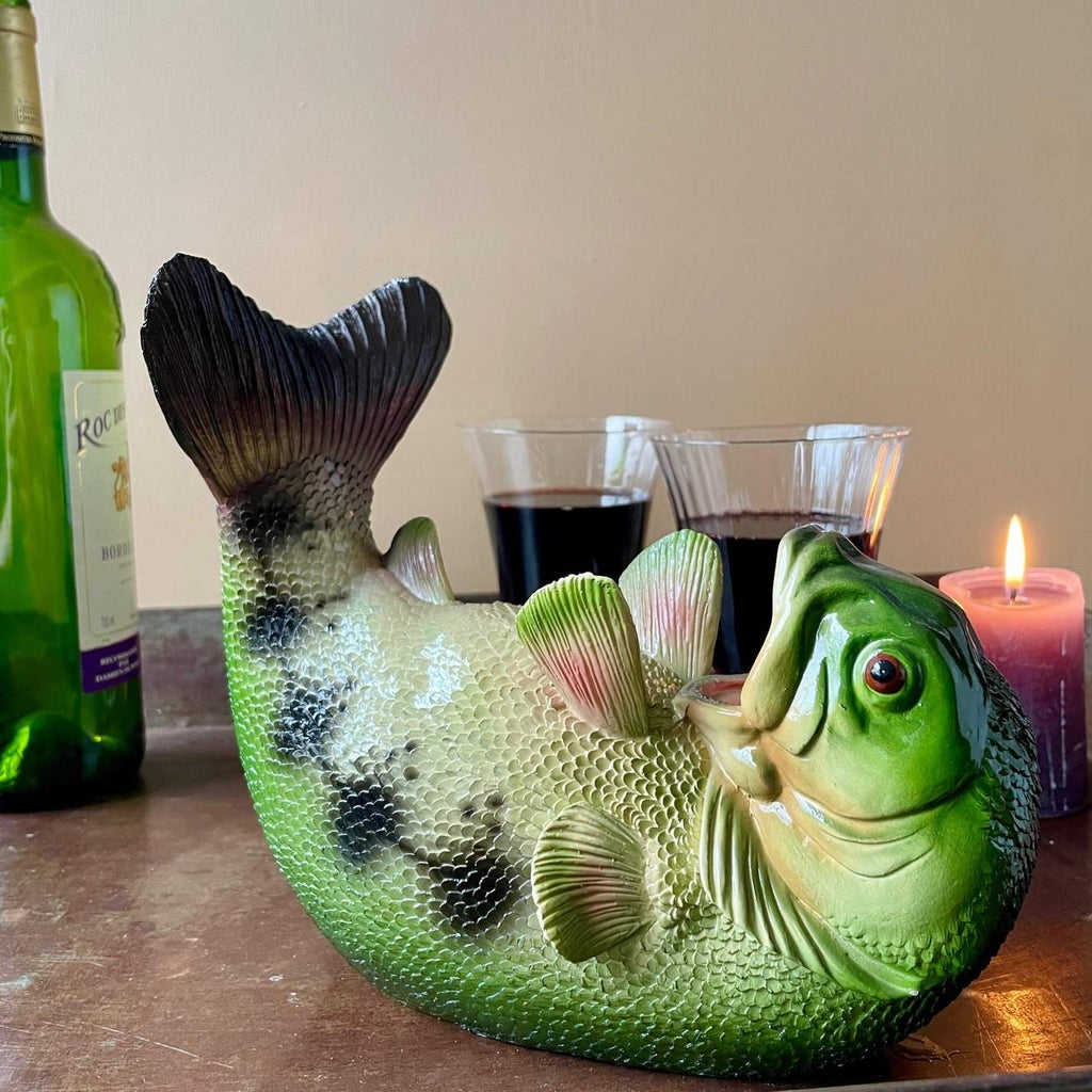 Made from brightly coloured moulded resin, our fabulous fish holds a bottle of wine with ease in his open mouth, whilst being a kitsch retro talking point on the sideboard.