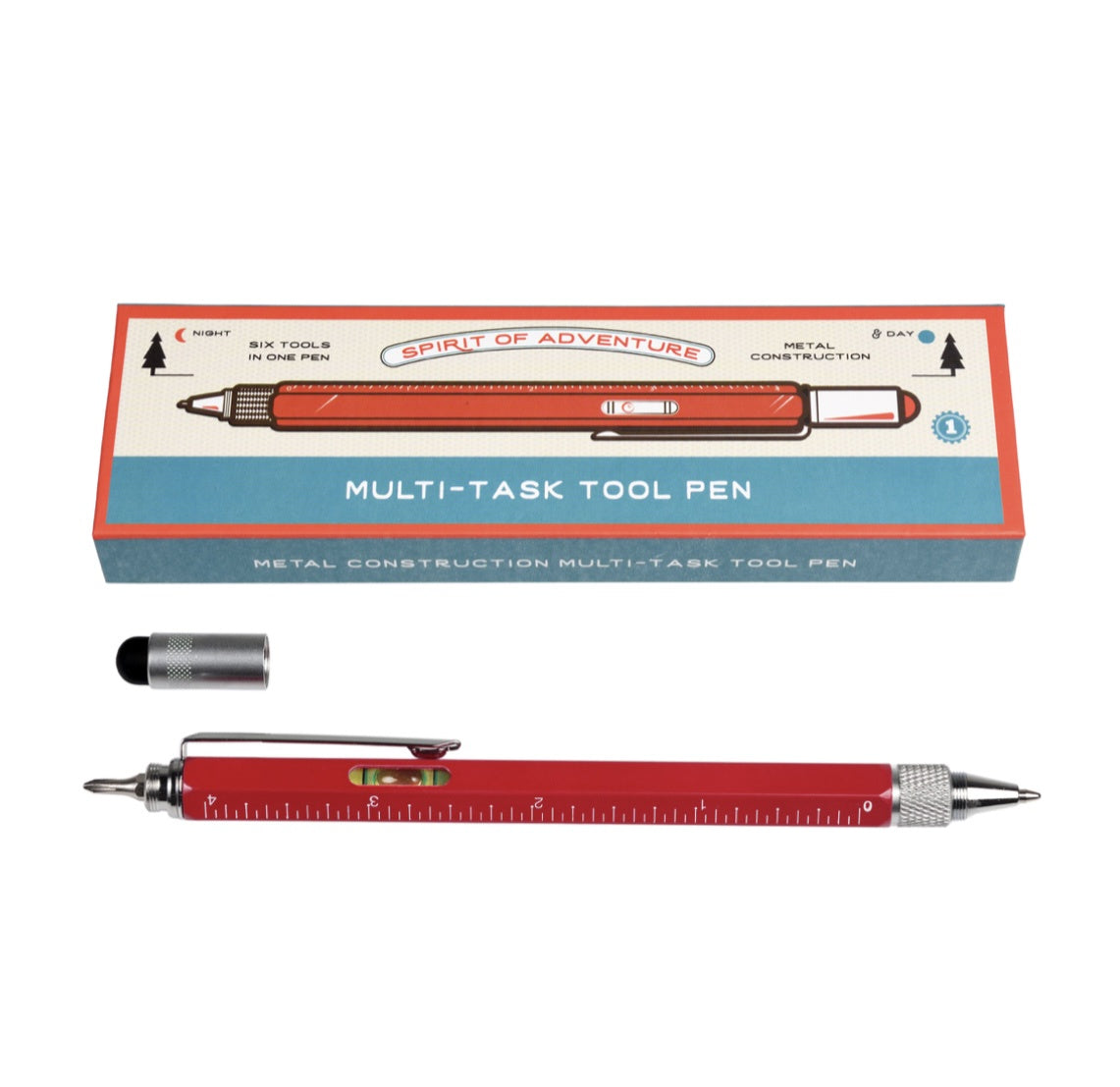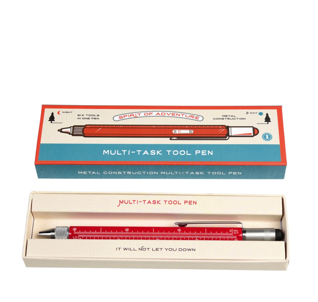 The perfect stationary gift for a handyworker. Designed for ultimate practicality. This compact tool combines several essential features into one sleek design. Multi-functional pen that also acts as a spirit level, ruler (cm and inches), flat head screwdriver, cross head screwdriver, touch screen stylus and replaceable cartridge pen.