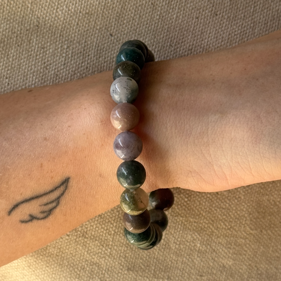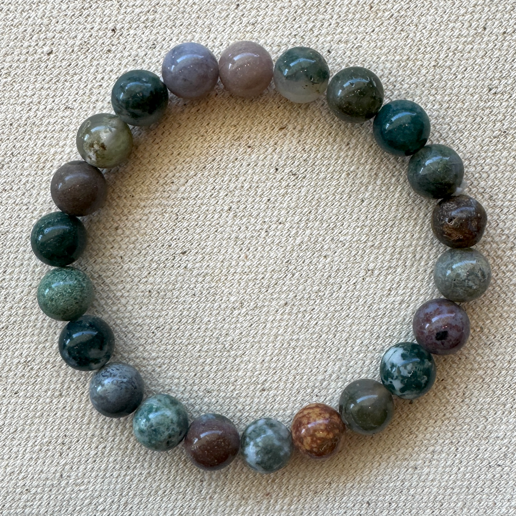 Elevate your energy and style with this beautiful Indian Agate Stretch Bracelet - a handmade piece with genuine, polished Indian Agate beads. Known as a powerful stone of stability, Indian Agate supports emotional balance and builds self-confidence.