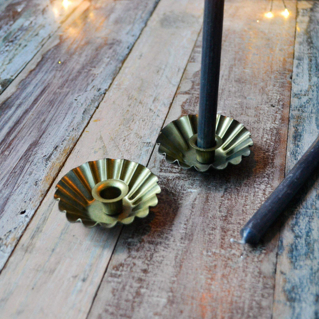 Brass Scalloped Skinny Dinner Candle Holder measures W6.5cm, H2cm