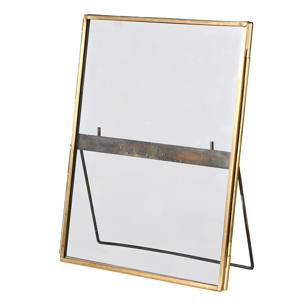 This handmade photo frame has an antique brass finish. With a fine brass stand to allow for it to free stand portrait.