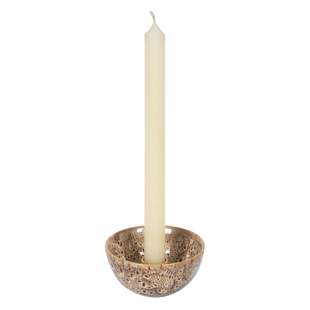 a really unusual candle holder perfect to hold a standard size dinner candle. Made froim ceramic and decorated with retro salt glaze.