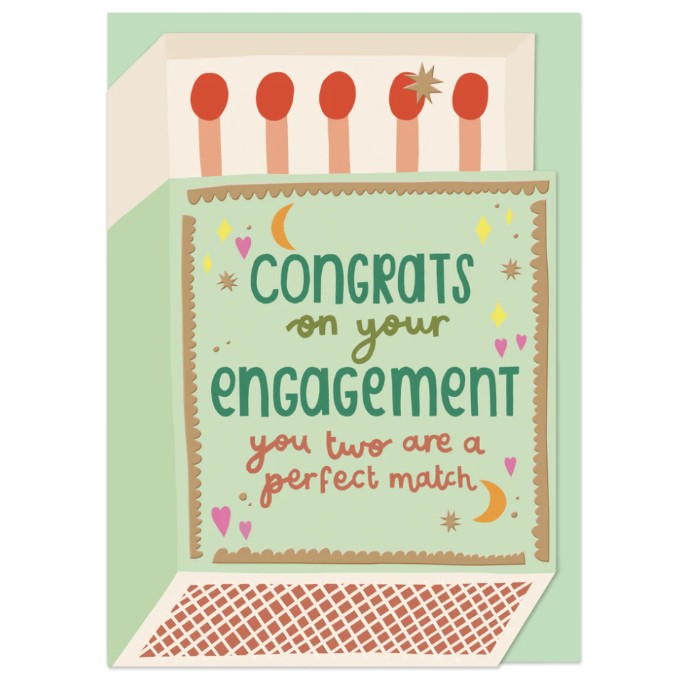 Card - Matchbox Engagement - This card combines playful die cut icons and hot gold foil details that dazzle. Perfect for a couple who love a bold, modern twist|!