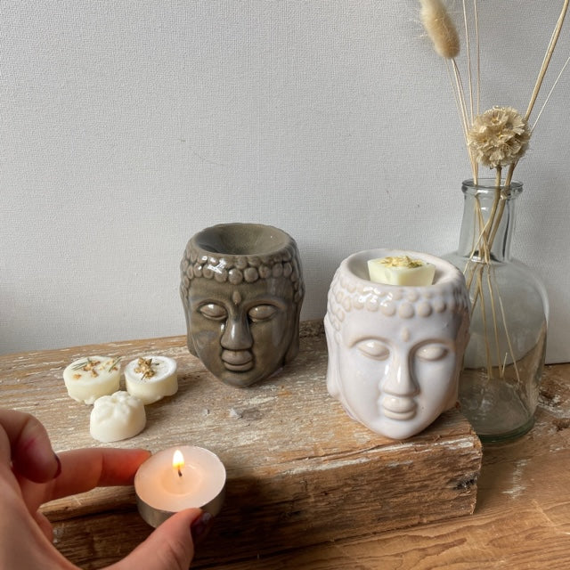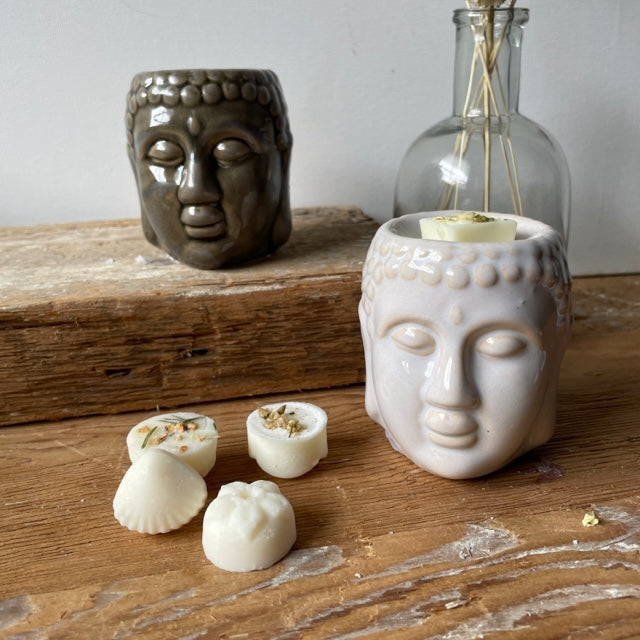 Buddha head burner is suitable for both wax melts and fragrance oil. Perfect to bring a sense of calm and zen to help you unwind at the end of the day, simply light a tea light candle under the burner’s bowl to fragrance your home. Simple in style, this burner would look beautiful in the bathroom to add a little luxury to bath time. Buddah burner is available in 2 colours, choose from either white or grey.