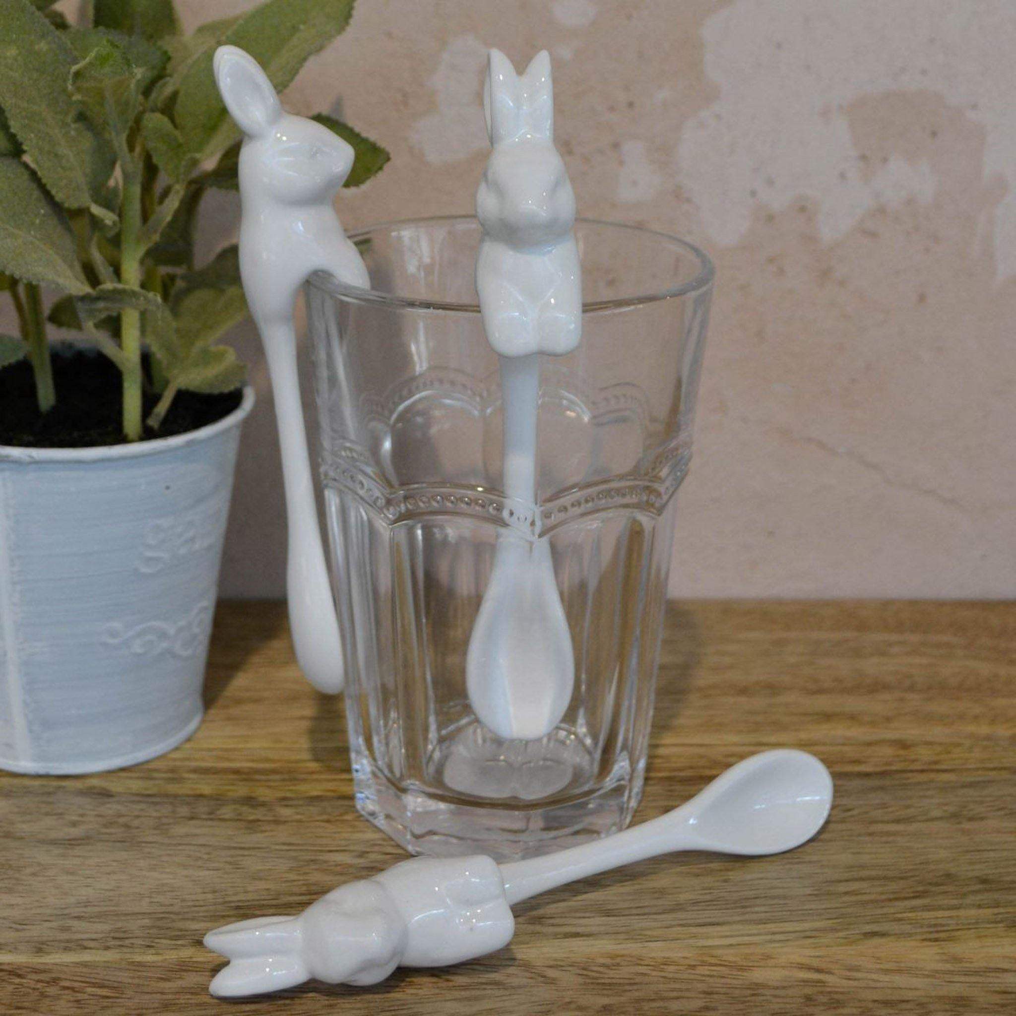 Super-cute, white ceramic bunny rabbit bunny tea spoon.