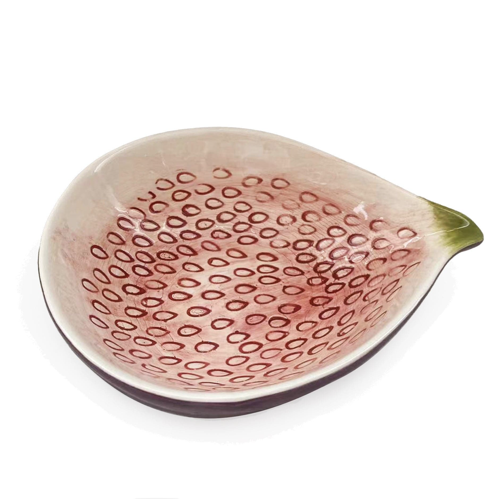 Ceramic Bowl, shaped like a cut fig, in rich aubergine, pink & green with carved seed detailing! Perfect to add a splash of spring colour to your kitchen or dining table and practical too!
