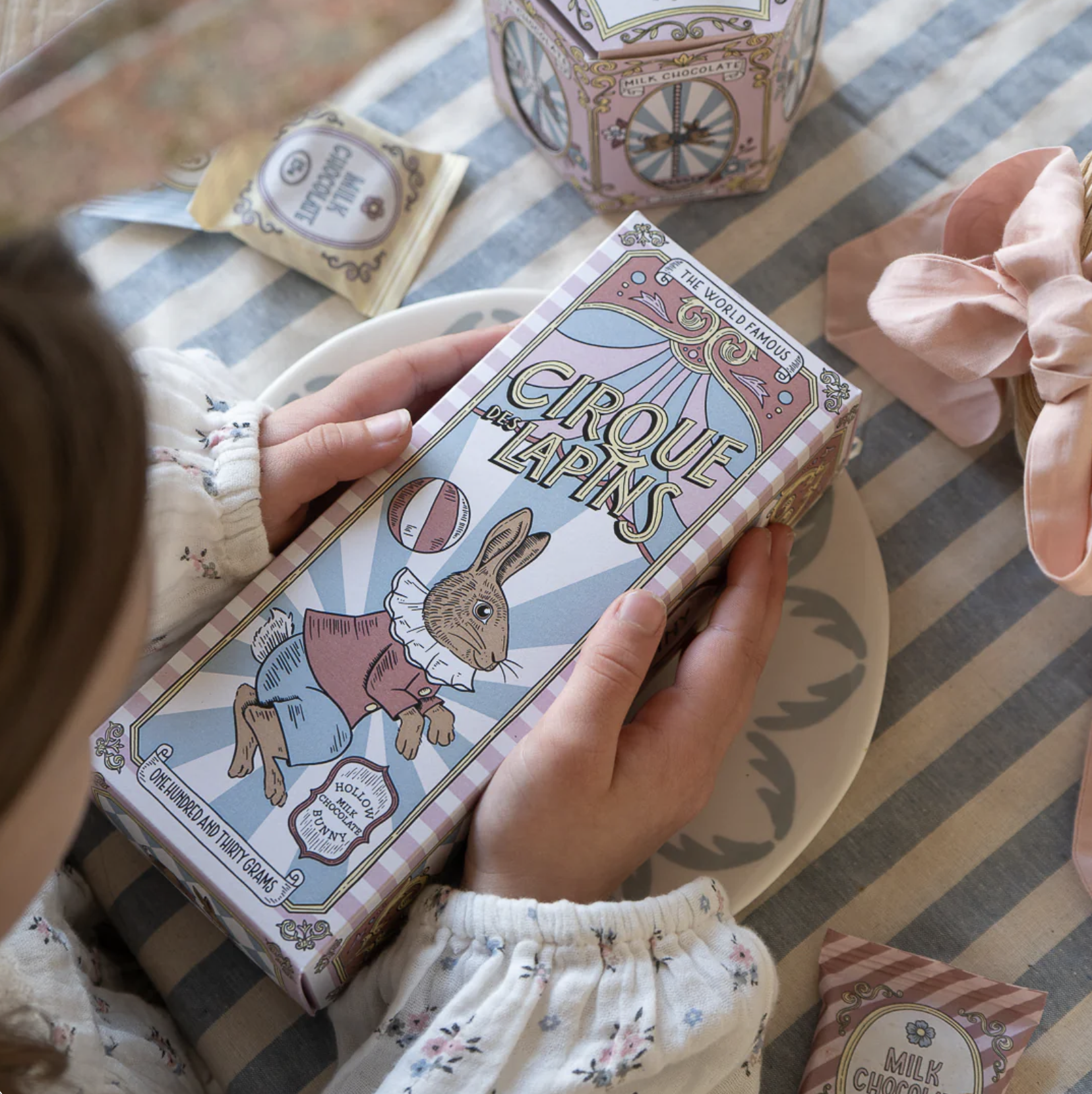 Simply open the lid, unwrap the delicate tissue paper, and among the shredded nest, you’ll find a delightful (and generously sized!) Chocolate Easter Bunny