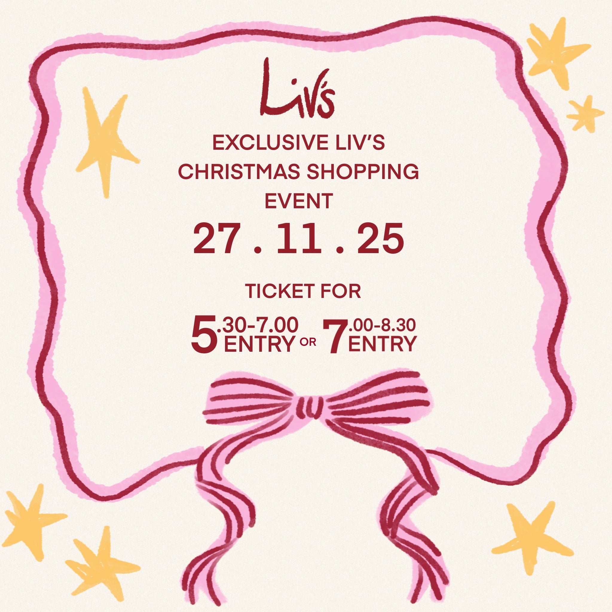 The Liv's Exclusive Christmas Shopping event, where you'll be treated to a festive glass of fizz, a mince pie and exclusive discounts across the store.