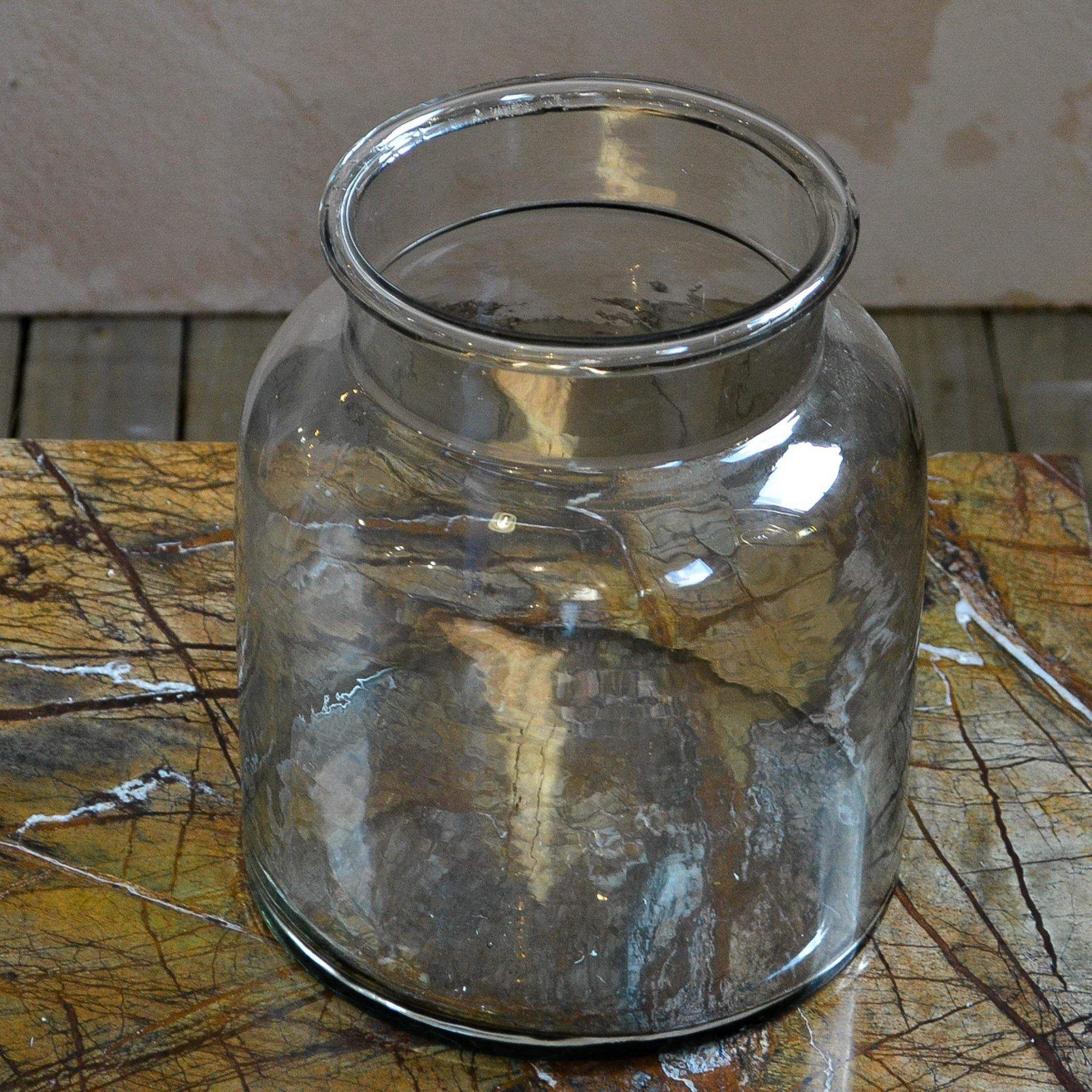 This small glass jar vase is brilliantly versatile and looks amazing with a collection of soaps, wine corks, fruit, candles… not just flowers! As it's made from recycled glass there is an instant unique charm added to each vase and all are individual.