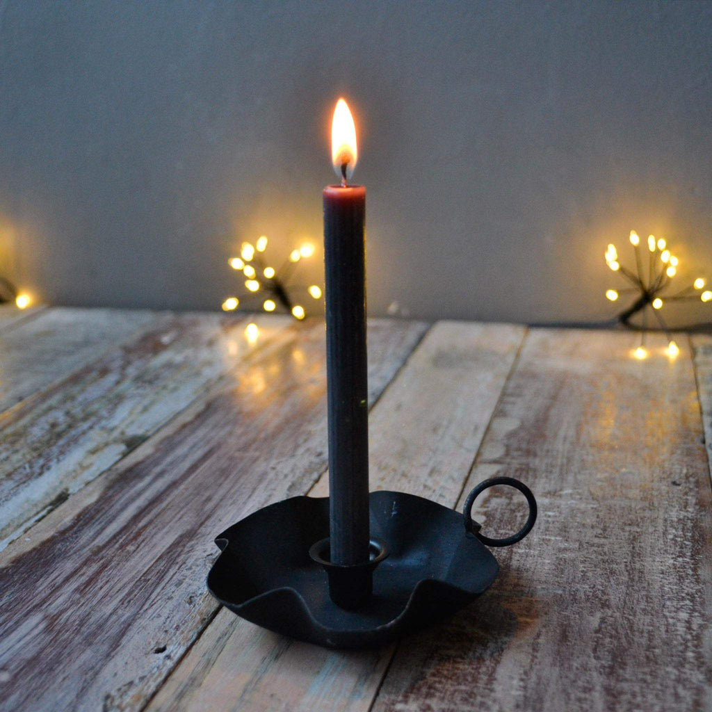 Deep Chamber Candle Holder for Skinny Candles - Burnt Black measures H5cm , W10cm