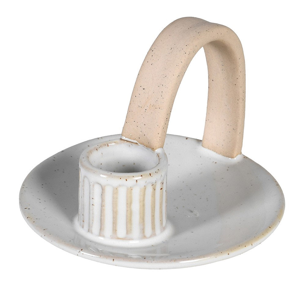 Dinner Candle Holder - White with Handle - this beautiful chamber stick is perfect to hold a standard size dinner candle. It's nostalgic look with add instant charm to your interiors.