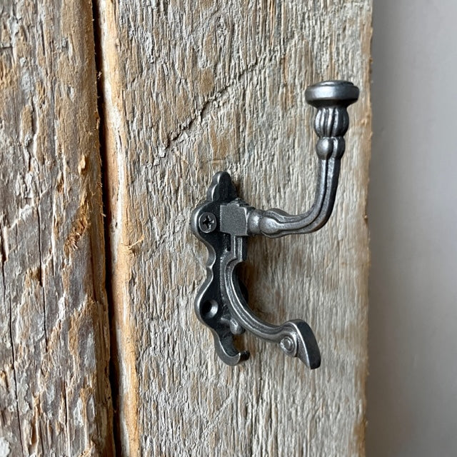 Double Coat Hook - Noble, Antique Iron is a petite double hat & coat hook, which is useful without taking up too much space. Ornate detailing gives this hook a heritage feel. Why not use multiple hooks to create a coat rack in your hallway,