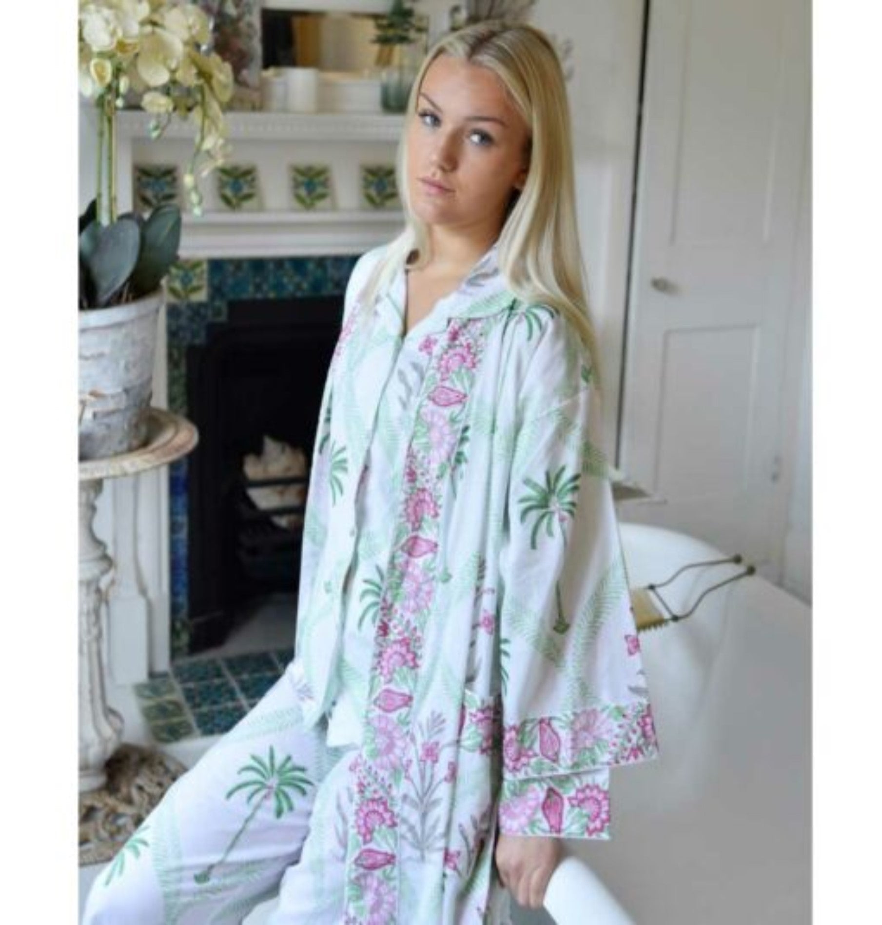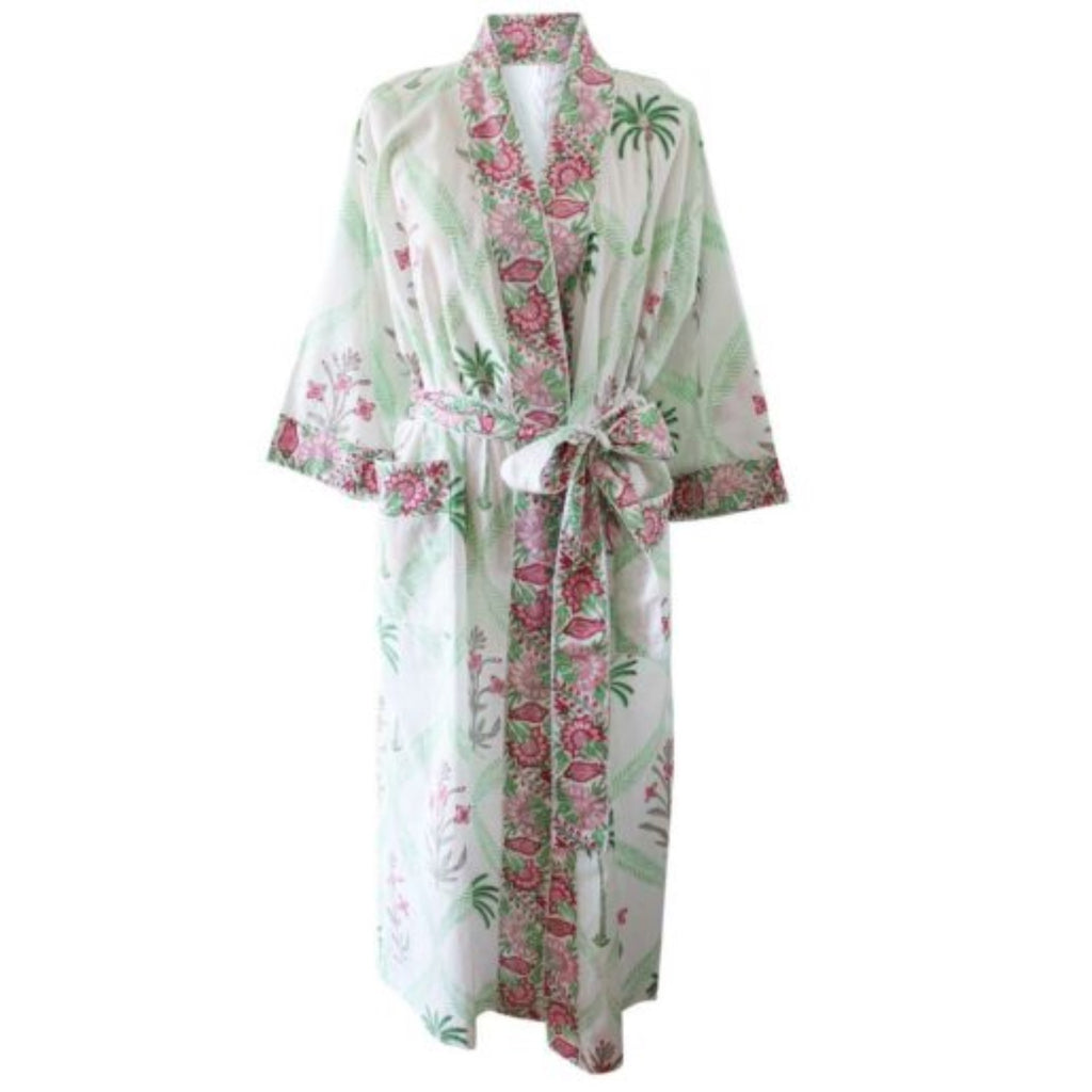 Designed using traditional Indian technique of woodblock printing, this gorgeous dressing gown is made from beautiful lightweight cotton making the dressing gown super comfortable and easy to wear.