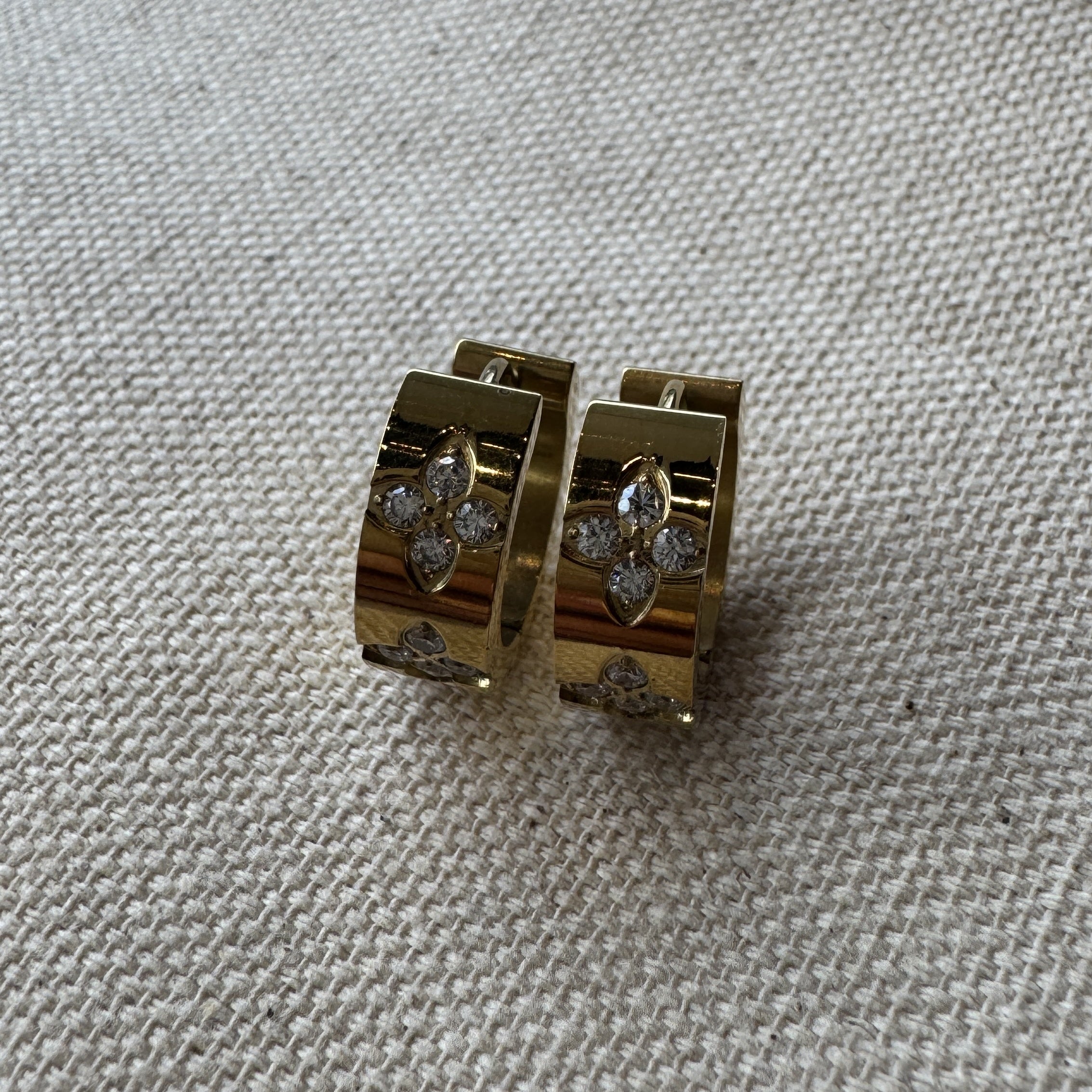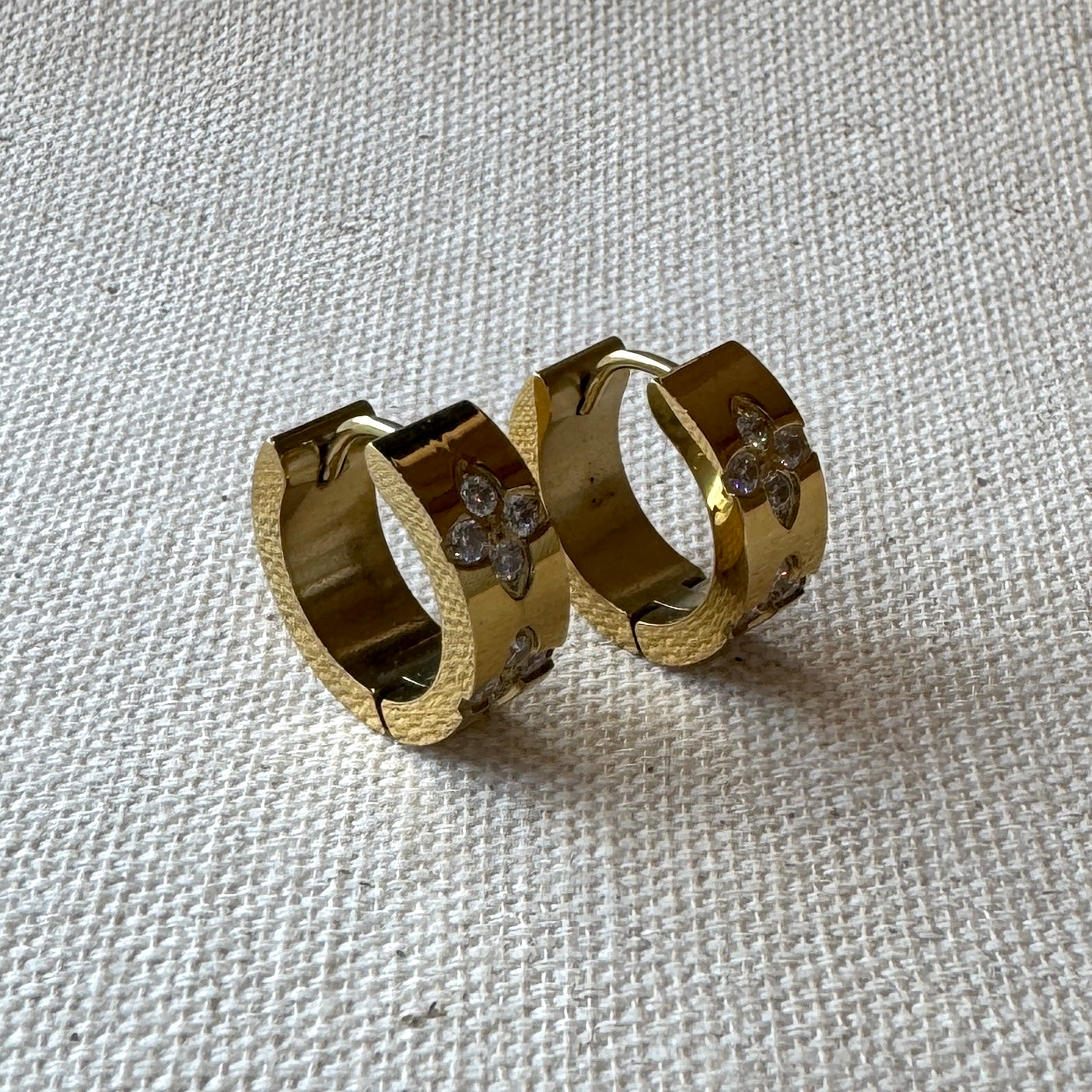 Everyday Earrings - Gold Huggie Hoops, Clover