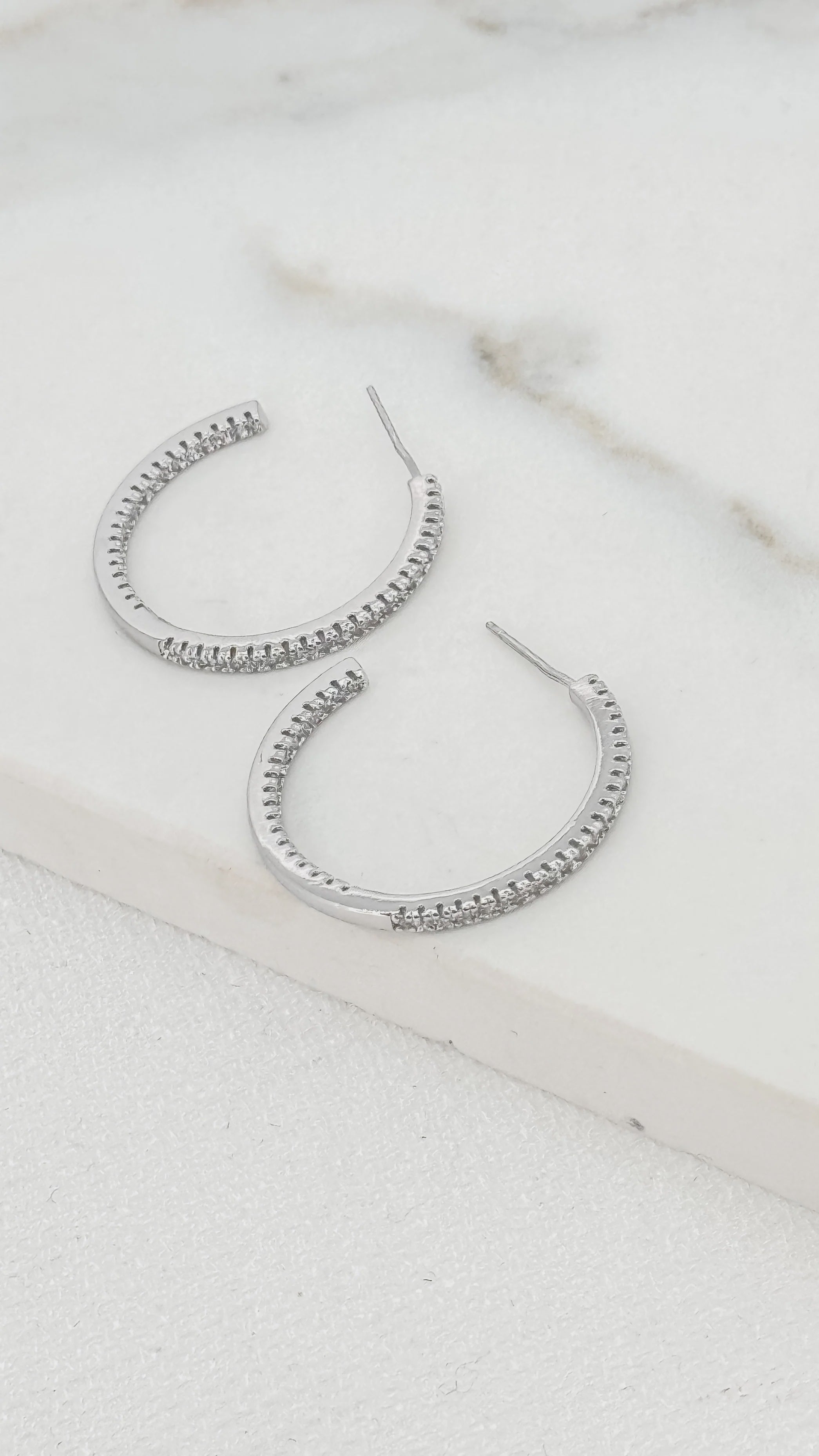 Earrings - Silver Diamante Hoops. These earrings will add a touch of sparkle to each and every outfit, because 'Diamantes' are a girls best friend!