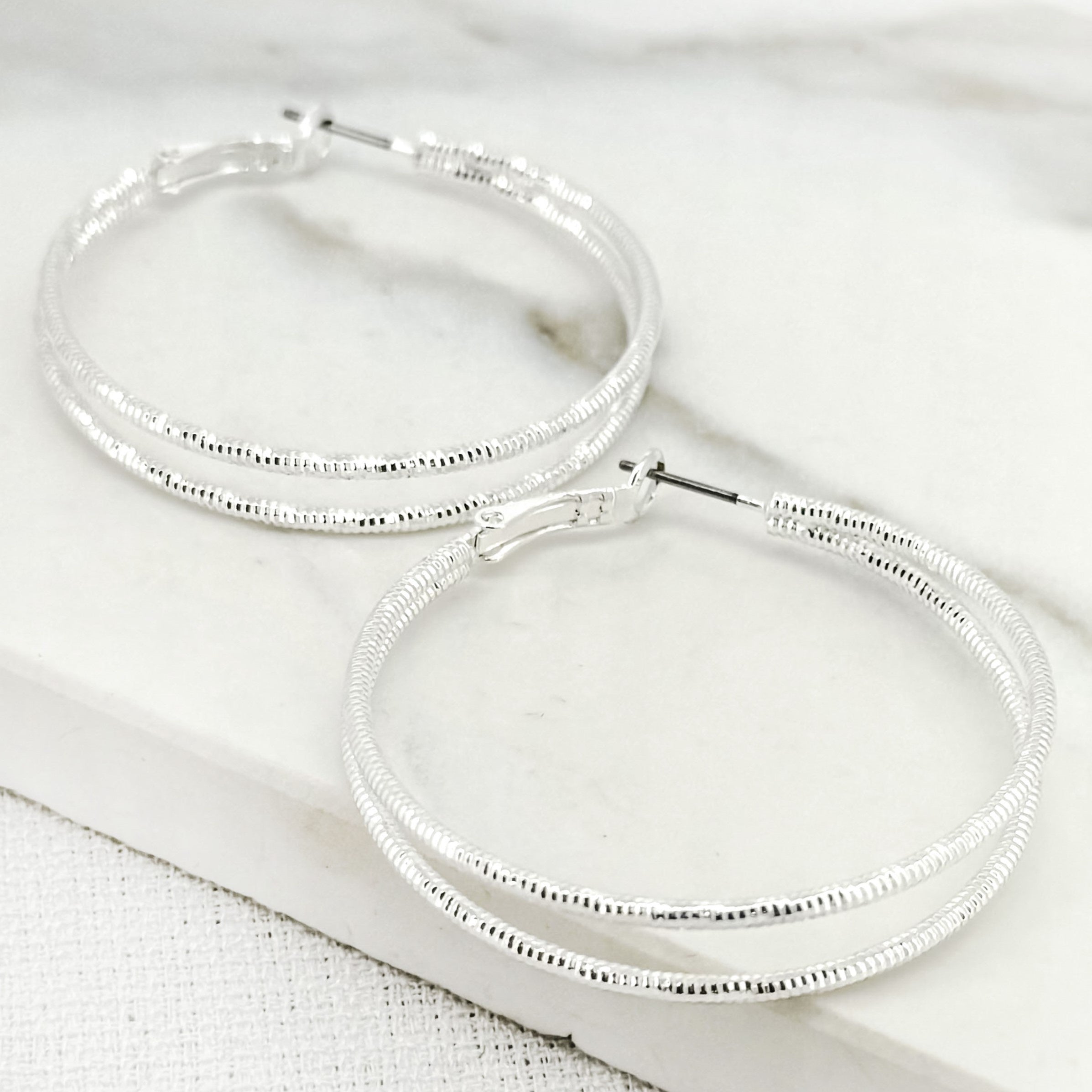 Earrings - Silver Faceted Double Hoop. These interlocking hoops reflect light beautifully without completely overpowering your look, a modern twist on a classic hoop.