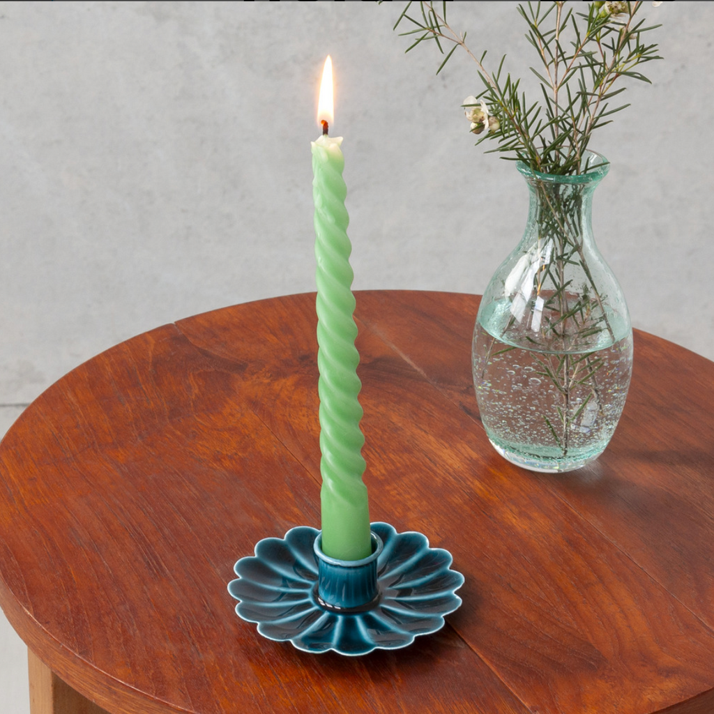 This little dinner candle holder would look beautiful simply styled alone, or as a collection of romantic objet on a dressing table tray. And would work perfectly with our short or tall dinner candles. Its simple design and striking colour will look great on your dining table or mantelpiece.