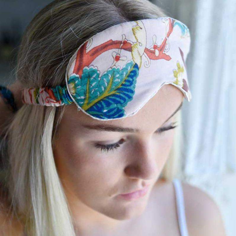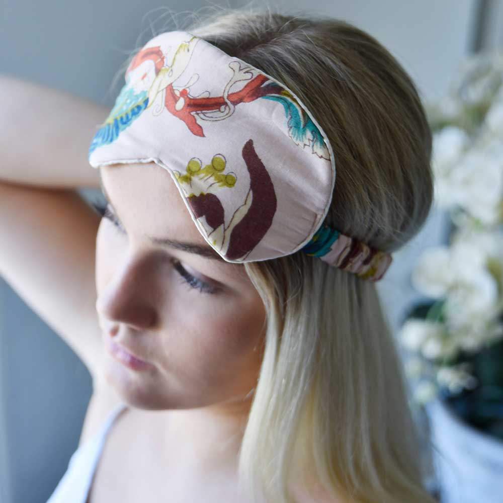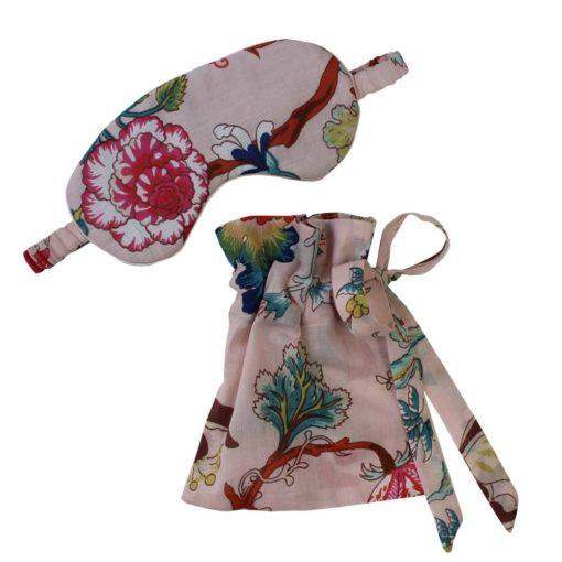The perfect travel companion. This beautiful eye mask features a silky backing and an elasticated band for extra comfort. Complete with matching drawstring bag, this eye mask is perfect for travel or for feeling pampered at home!