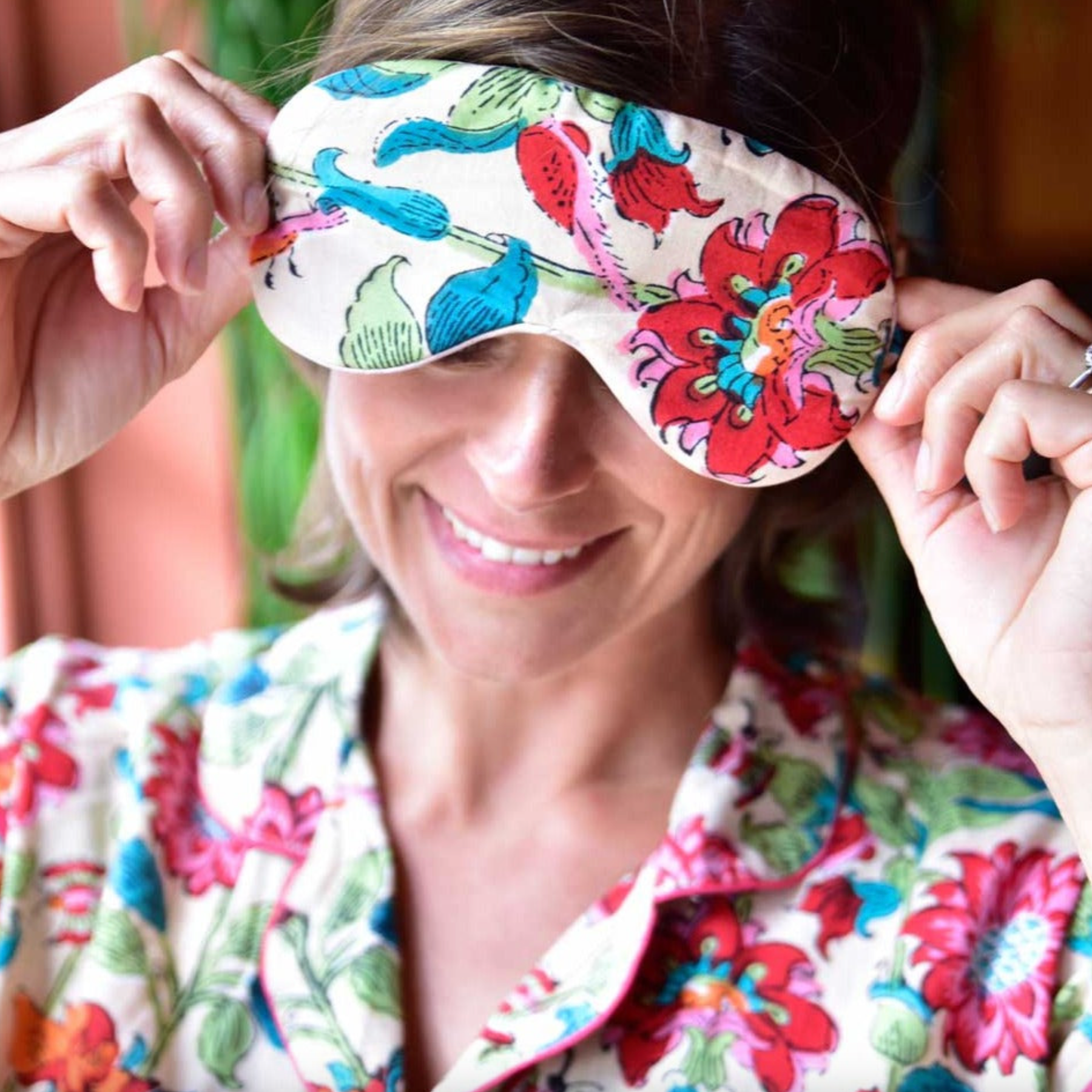 The perfect travel companion. This beautiful eye mask features a silky backing and an elasticated band for extra comfort. Complete with matching drawstring bag, this eye mask is perfect for travel or for feeling pampered at home!
