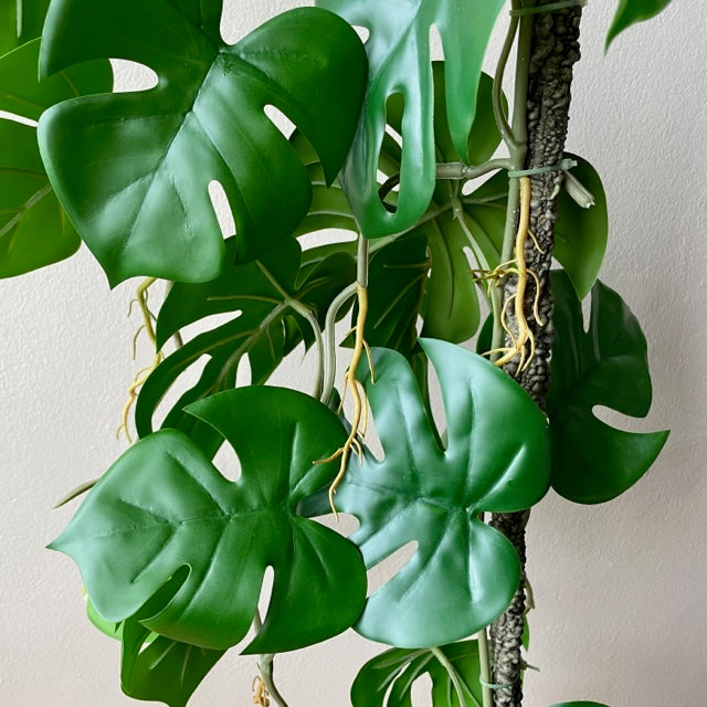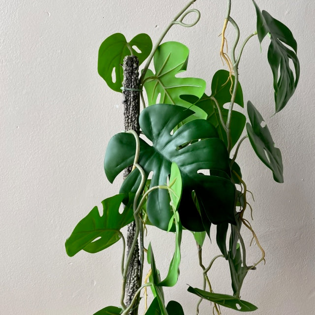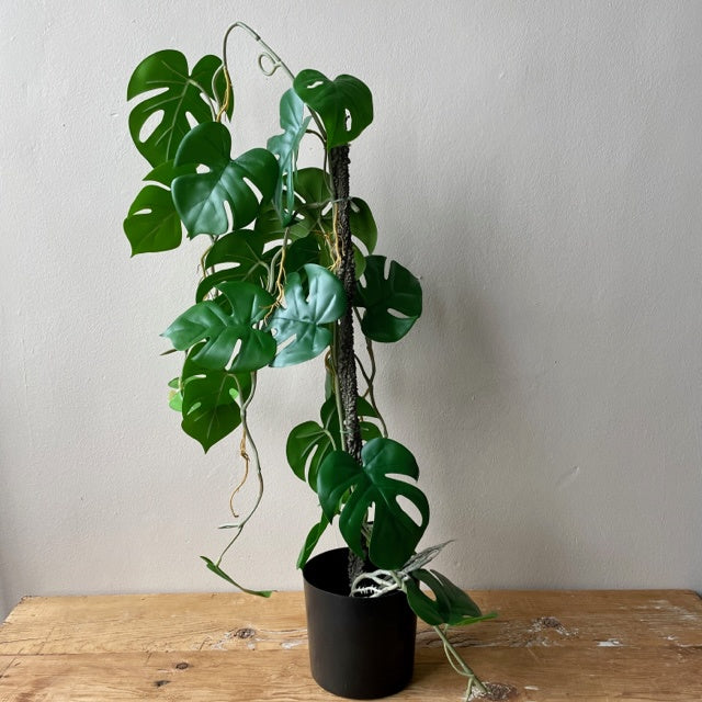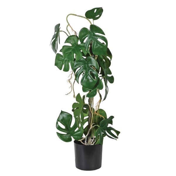 This fabulous faux Cheese plant comes potted in a simple black plant pot and artificial soil. A good size too, measuring H66cm tall, it's width depends on how you manipulate the leaves and tendrils