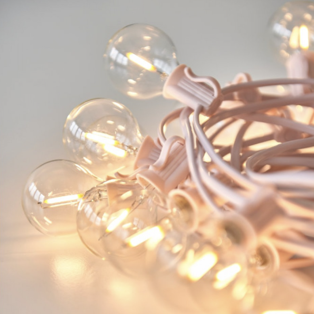 Add instant warmth to your garden, or indeed any space that needs a little creative lift, with these pretty pink festoon lights.
