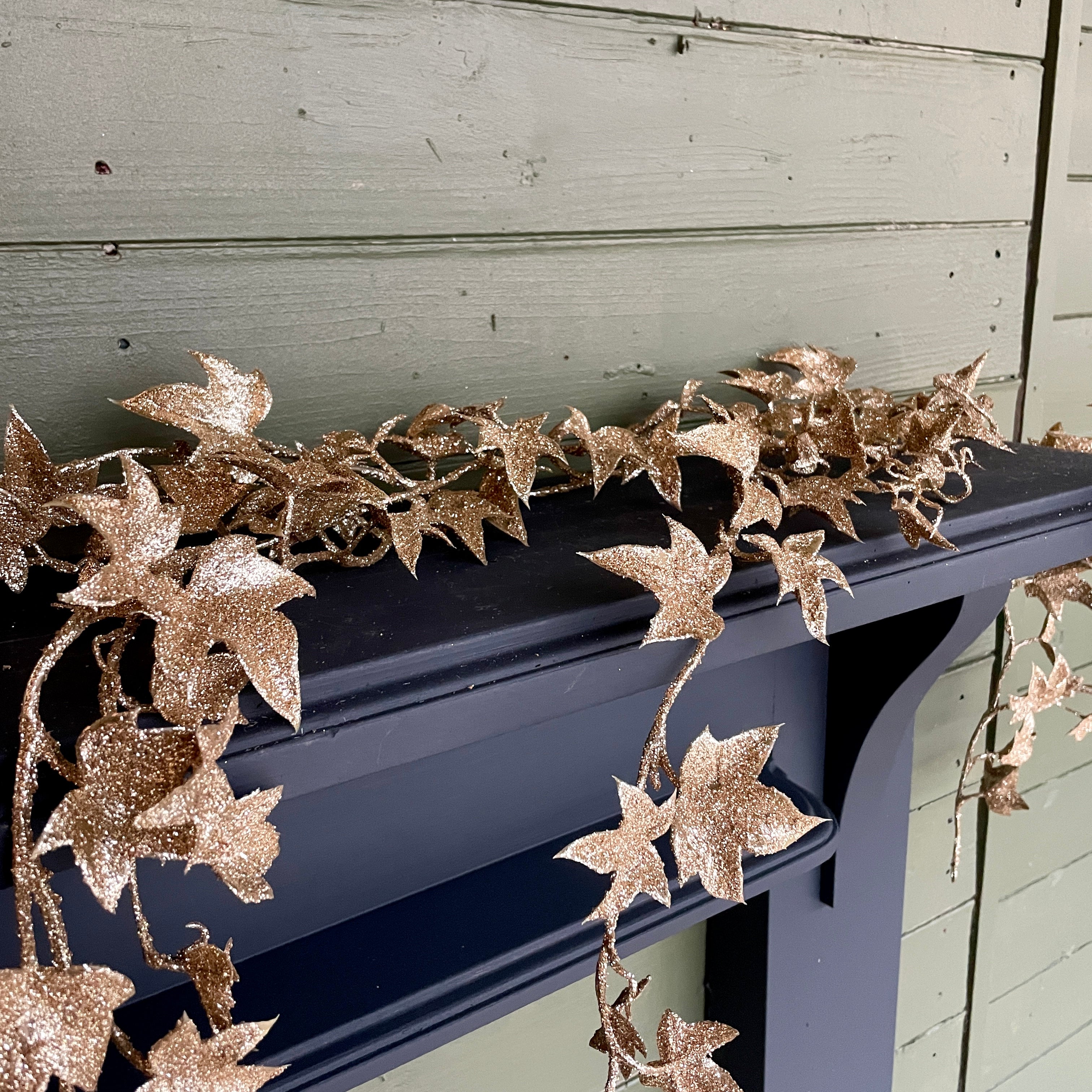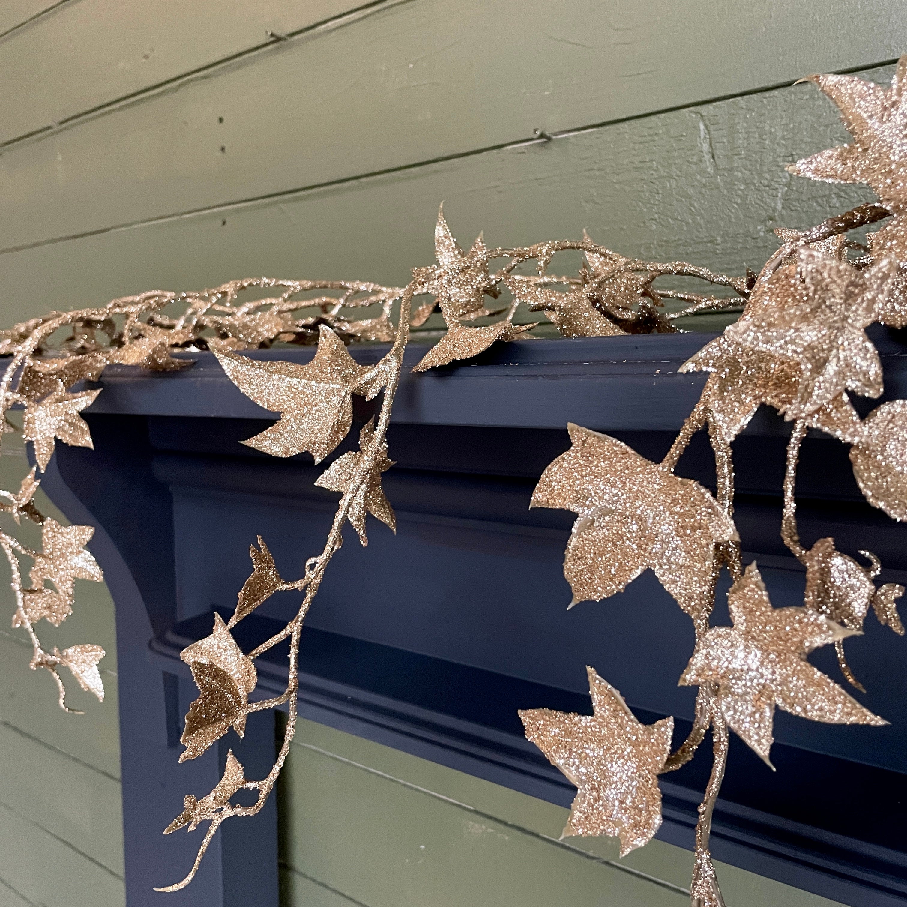 Garland - Gold Glitter Ivy, a glamourous yet wild trailing leaf garland which will add instant whimsy to your christmas decor.