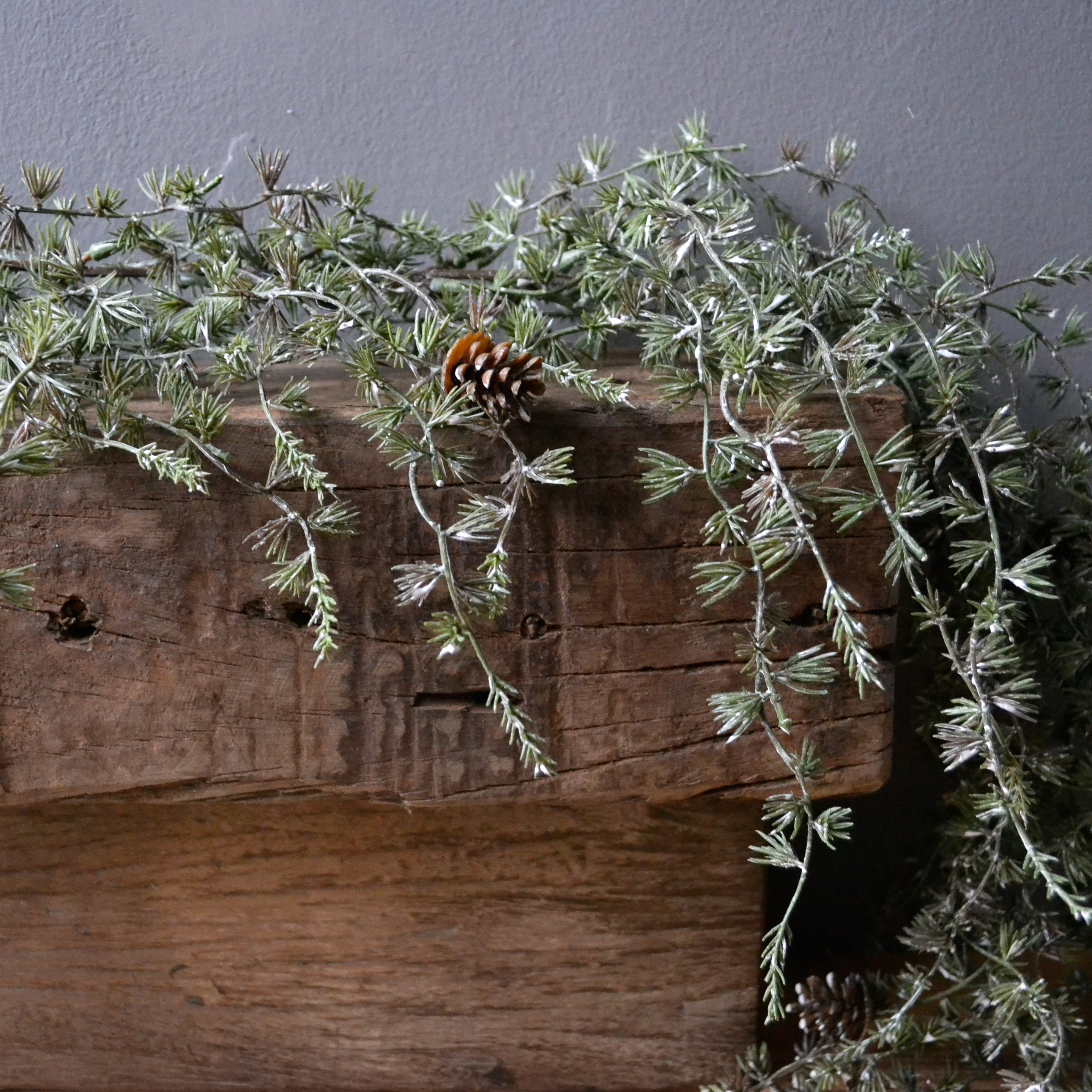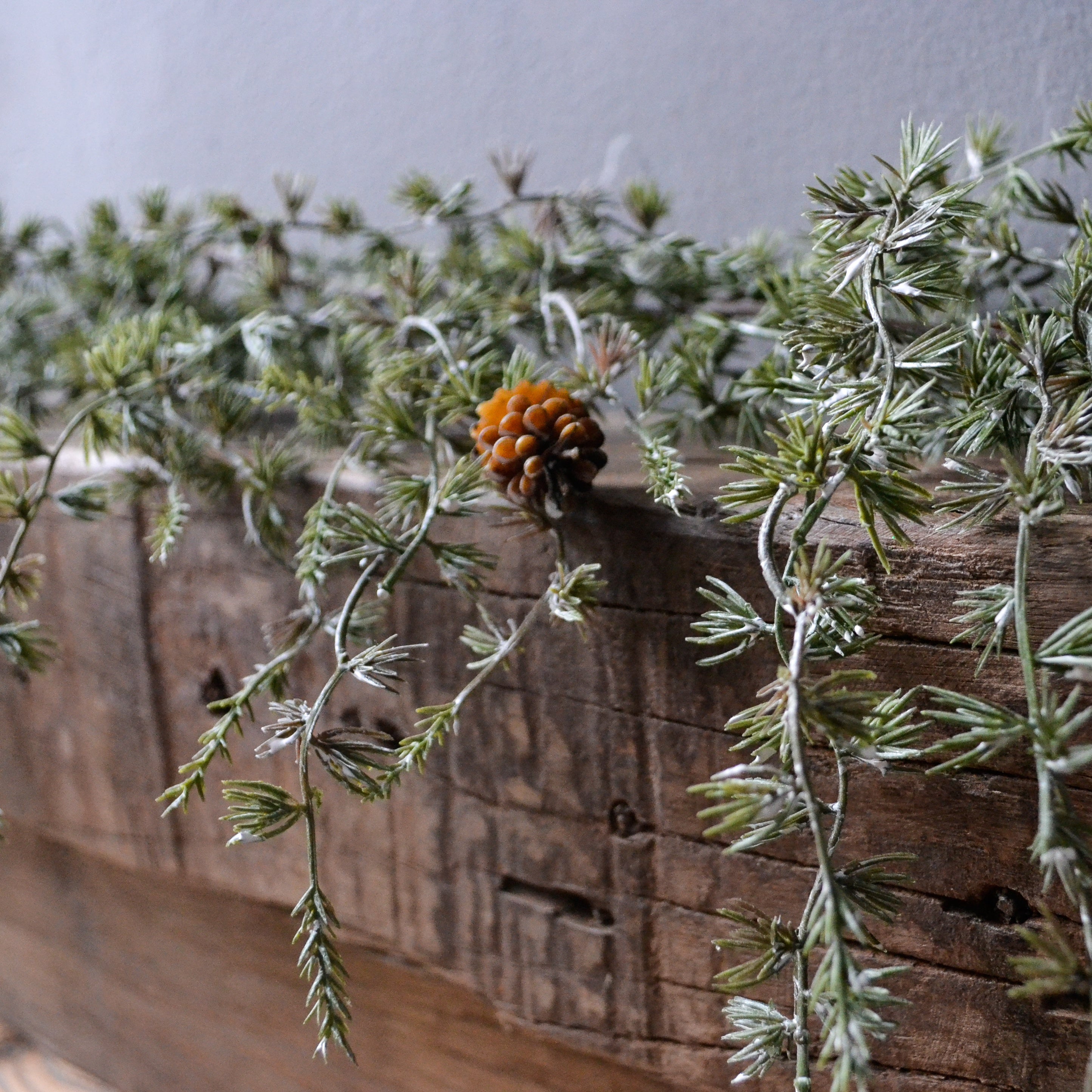 Comprising loose trailing pine fronds, delicately dusted, and studded with realistic small faux pinecones.