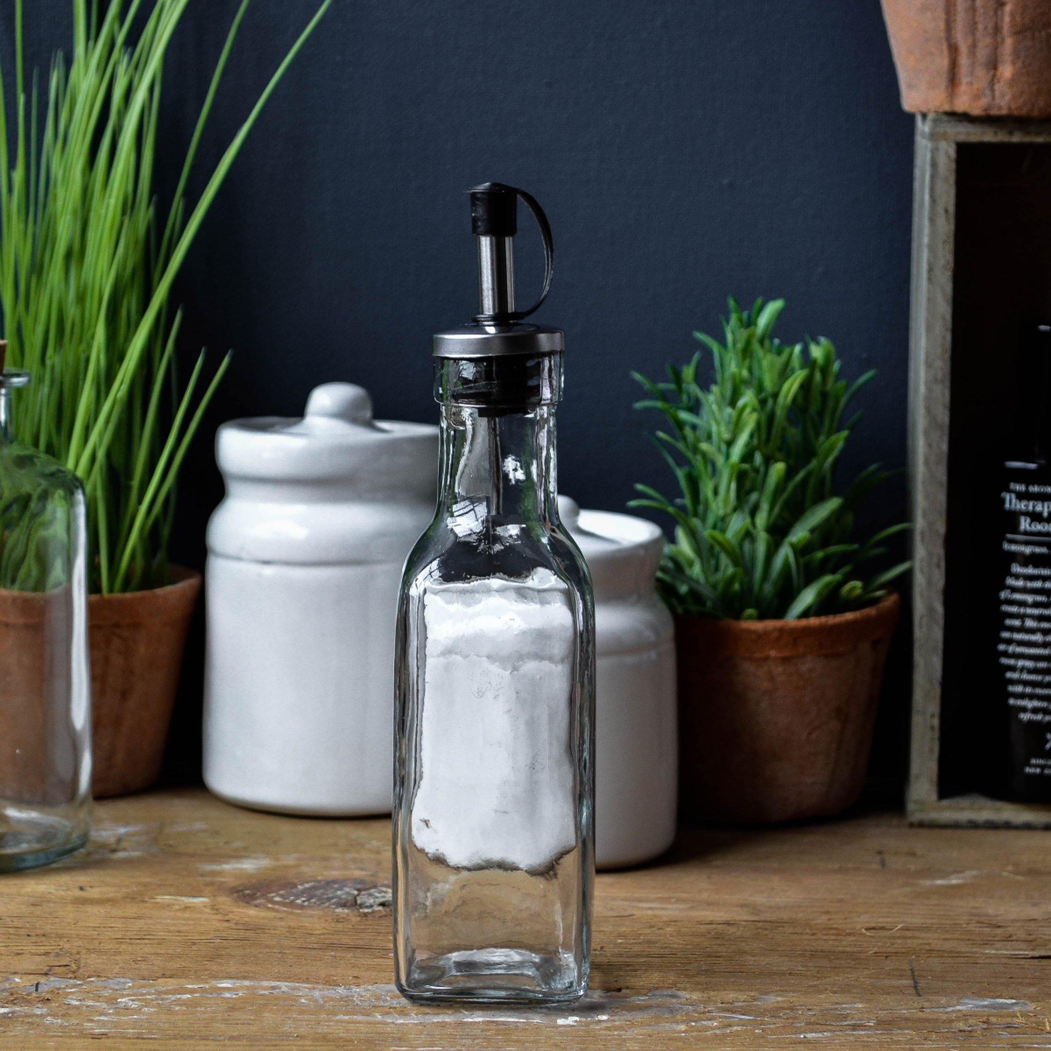 Fed up of having unsightly huge plastic container bottles for your olive oil out on display in your kitchen? Liv has the perfect solution! This adorable glass bottle with pourer is the ideal size to have out on display with just the right measurements. Why not also get one for your dining table for your home made summer salad dressings! The Glass bottle with pourer has the following dimensions: H19 x W5cm and holds 160ml.