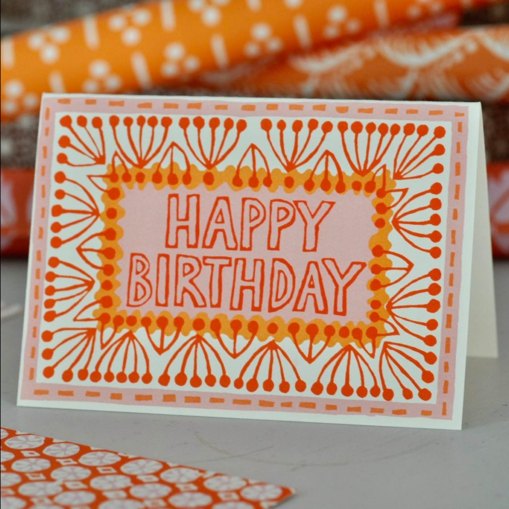 Made from 300gsm smooth ivory uncoated paper printed in hand-mixed colours. This card is blank inside.