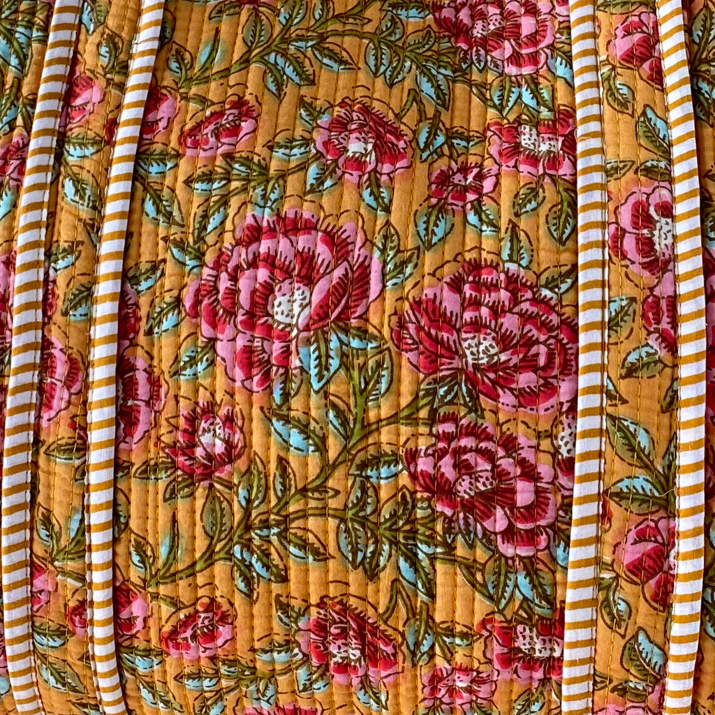 Handmade Reversible Shopper - Small, Mustard & Pink Flowers