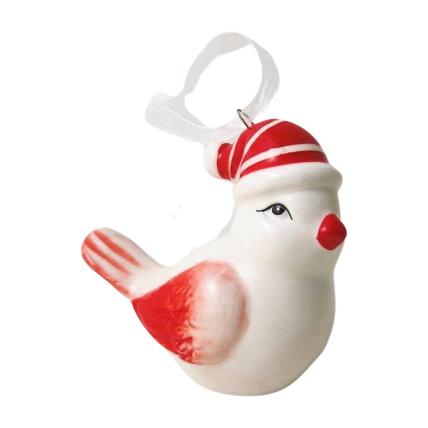 Hanging Dec - Festive Ceramic Bird, 7.5cm